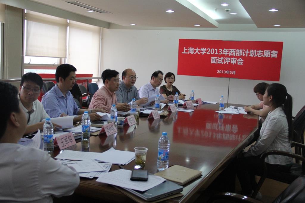 5月22日下午1点30分,Beat365唯一官方网站2013年西部志愿者评审会在校本部行政楼403举行。校党委副书记鲁雄刚、校长助理兼组织部部长徐旭、校长助理兼研工党委书记李伟、党委宣传部部长兼文明办主任陈志宏、纪委副书记兼监察处处长吴仲钢、招毕办常务副主任叶红、社区管理部主任王军华和校团委书记胡大伟等评委老师,对13名志愿者候选人进行了面试。