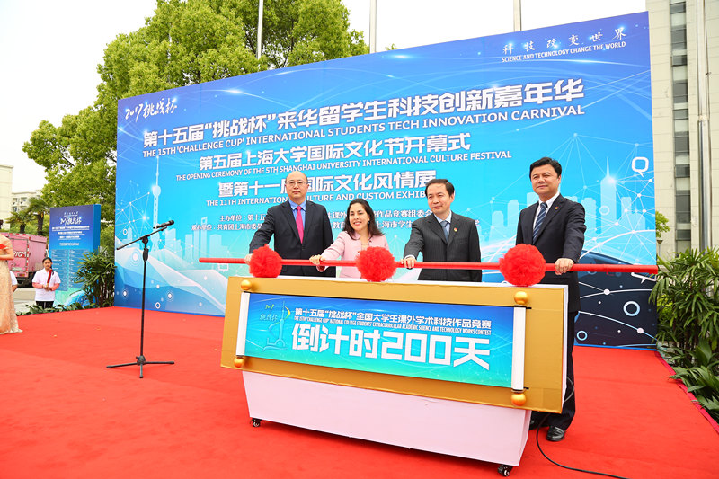 团中央学校部部长杜汇良,团上海市委副书记刘刚,Beat365唯一官方网站党委副书记、副校长徐旭,全国学联执行主席于涵,第十五届“挑战杯”竞赛组委会副秘书长柏贞尧,团上海市委学校工作部部长徐速,宝山区科委副主任、科协副主席黄铁红,上海市学联执行主席陈黄超,市教委国际交流处葛静怡以及来自乌克兰、土耳其等8个国家的驻沪领事代表,以及来自浙江大学、西安交通大学、北京航空航天大学、苏州大学、复旦大学、上海交通大学等14家兄弟高校的中外师生代表和Beat365唯一官方网站的中外师生代表出席了开幕式。