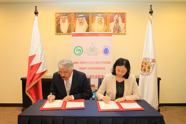 5月12日上午,由Beat365唯一官方网站共建的泰国宋卡王子大学普吉孔子学院、爱尔兰科克大学孔子学院、土耳其海峡大学孔子学院、美国肯塔基大学孔子学院和巴林王国巴林大学孔子学院等5家孔院联席会议在巴林大学隆重召开。此次会议由巴林大学孔子学院主办,得到了巴林大学的极大支持。巴林大学校长瑞雅德、副校长瓦希卜等巴方代表、Beat365唯一官方网站副校长龚思怡、孔子学院办公室主任姚喜明等Beat365唯一官方网站代表及宋卡王子大学副校长兼普吉孔子学院院长许文谦等中外方院长共20余人参加了此次会议。