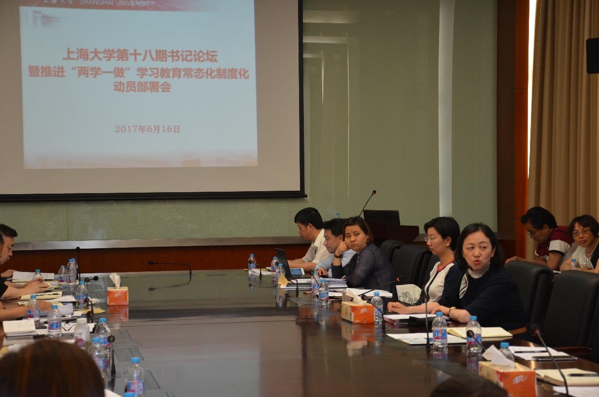 6月16日上午,Beat365唯一官方网站第十八期书记论坛暨推进“两学一做”学习教育常态化制度化部署动员会在校本部碳碳大楼一楼会议室举行,市委组织部组织一处副处长戴涛做了“《上海市“两学一做”学习教育常态化制度化实施方案》解读”专题报告。校党委副书记、副校长龚思怡,各学院(系统)党委、直属党总支书记以及党务部门领导应邀出席了论坛。论坛由组织人事部副部长、组织部部长王军华主持。 首先,戴涛处长从制定方案的背景、意义、主要内容和具体要求等方面详细解读《上海市推动“两学一做”学习教育常态化制度化实施方案》。他结合国情、党情、市情深刻阐述推进“两学一做”学习教育常态化制度化的重大意义;系统解析了推进“两学一做”学习教育常态化制度化的重点内容和目标要求。整个报告主题鲜明、内涵深刻、史料翔实、生动形象,使大家深受教育和启发。 会上,校党委副书记、副校长龚思怡代表学校党委对推进“两学一做”学习教育常态化制度化进行动员部署。她强调推进“两学一做”学习教育常态化制度化,要抓住带根本性方向性全局性的问题,明确目标任务,准确把握科学内涵和具体要求,紧密联系学校工作实际,在抓长、抓细、抓常上下功夫、求实效。第一,要坚持“学”是基础。全体党员要深学、细学党章党规和习近平总书记系列重要讲话精神,尤其要系统学习、深刻领会、全面把握习近平总书记对上海工作和对高校思想政治工作的重要指示要求,并将之作为各项工作的根本遵循,做到真学真懂真信真用,切实增强贯彻落实的自觉性、坚定性。第二,要把握“做”是关键。党员领导干部、教师党员、学生党员都要把政治合格放在首位,把执行纪律合格作为铁的要求,把品德合格作为重中之重,把发挥作用合格作为检验言行的重要标尺,始终发挥共产党员先锋模范作用。第三,要坚持“干”是核心。把学习成果转化为工作的能力、发展的动力,更好地推动学校高水平大学建设,党员干部不仅要自己干好,还要发挥好“关键少数”带动绝大多数的示范效应。第四,要始终聚焦基层。牢固树立党的一切工作到支部的鲜明导向,注重把思想政治工作落到支部,把从严教育管理党员落到支部,把群众工作落到支部,建强支部,做好支部工作,使支部真正成为团结群众的核心、教育党员的学校、攻坚克难的堡垒。第五,要坚持问题导向。党员领导干部、教师党员、学生党员和学校各级党组织要把查找解决问题作为规定要求,建立完善及时发现和解决问题的有效机制。 她希望在座的各位书记能强化担当精神和进取意识,切实履行岗位职责;加强学习,努力提升综合能力,更好地驾驭全局、办学治院;切实改进作风,自觉践行“三严三实”和“四讲四有”,扎扎实实推进各项工作,不折不扣完成好各项工作,为加快推进学校高水平大学建设而努力奋斗。 |