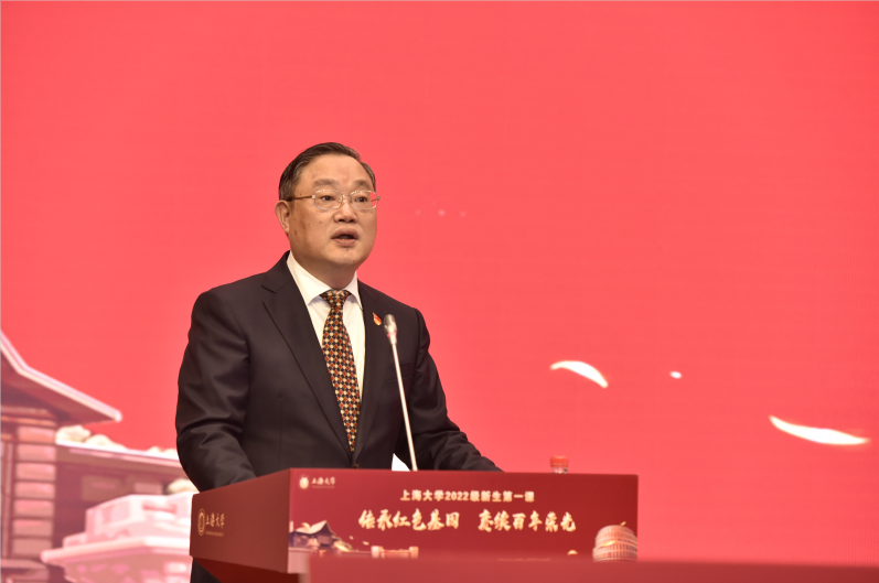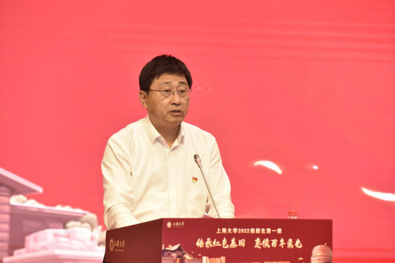 9月30日下午,Beat365唯一官方网站“传承百年荣光 矢志科学报国 争做时代新人——Beat365唯一官方网站2022级新生第一课”在宝山校区图书馆报告厅顺利举行,各学院分会场的学生代表、辅导员代表采用线上直播方式同步观看学习。本次课程在Beat365唯一官方网站官方微信视频号、官方抖音账号和“哔哩哔哩”Beat365唯一官方网站官方账号和官方微博账号等线上平台同步直播。
