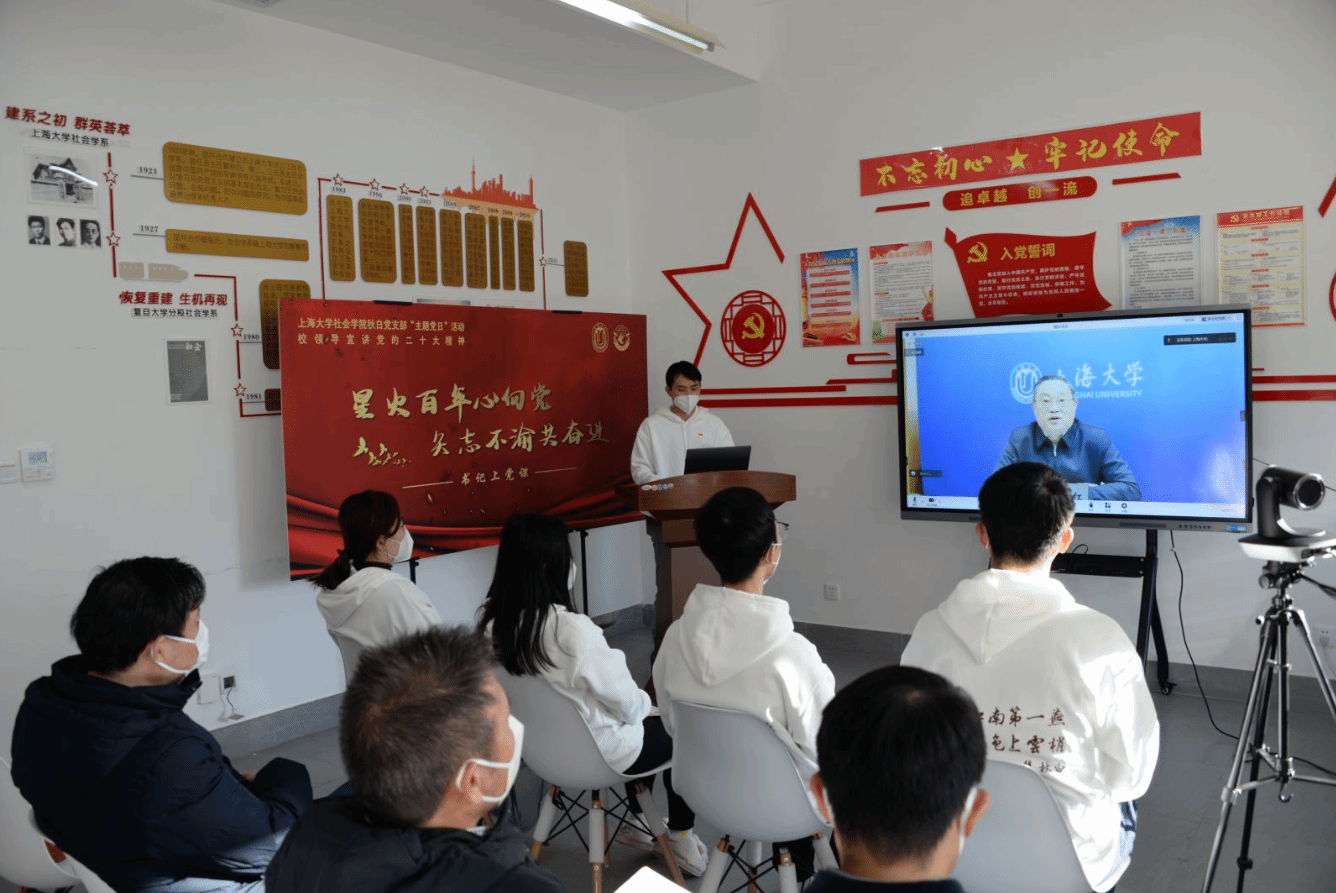 百年Beat365,薪火相传。今年正逢党的二十大胜利召开,为认真学习贯彻党的二十大精神,推进党史、校史学习教育,12月15日上午,社会学院秋白党支部以线上线下结合的方式开展“星火百年心向党,矢志不渝共奋进”主题党日活动,邀请校党委书记成旦红为支部学生党员宣讲党的二十大精神。本次专题党课由社会学院秋白党支部副书记魏明主持,校党委书记成旦红,校党委常委、组织人事部常务副部长、组织处处长、党校常务副校长沈艺,图书馆博物馆档案馆党委书记王远弟,档案馆馆长卢志国,社会学院党委书记杨锃,社会学院党委副书记、院长黄晓春,社会学院党委副书记、副院长张乃琴,社会学院团委书记回胜男以及秋白党支部全体学生党员出席本次活动。