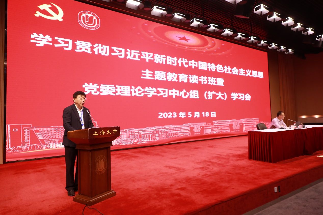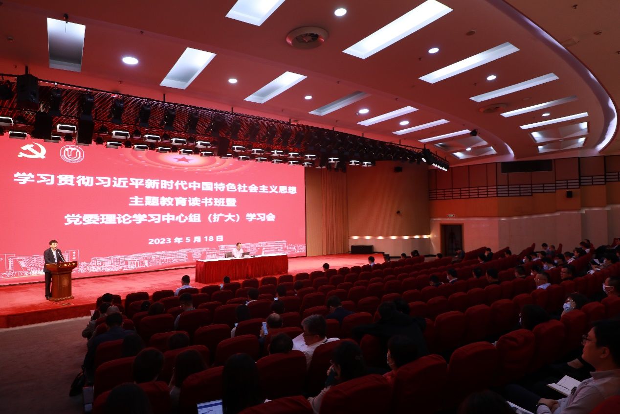 5月18日下午,Beat365唯一官方网站党委举办学习贯彻习近平新时代中国特色社会主义思想主题教育读书班第五讲暨党委理论学习中心组(扩大)学习会。校领导班子成员、全校各单位中层干部现场参加学习,市委第十八巡回指导组王娟同志列席学习会。会议由校党委副书记欧阳华主持。