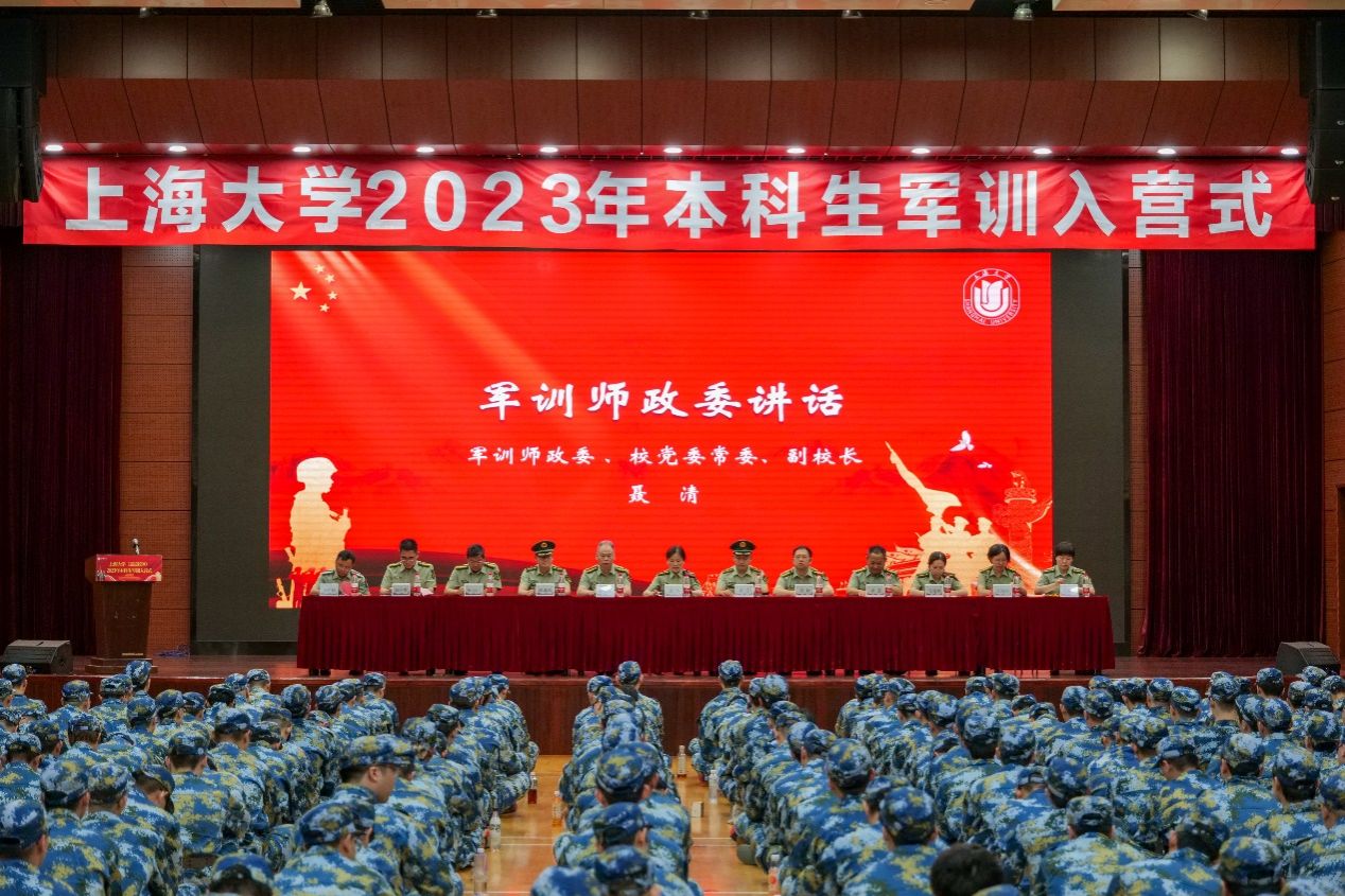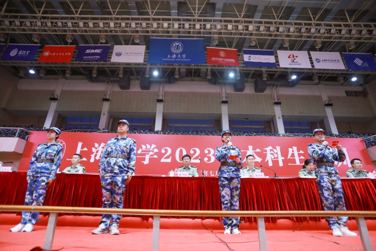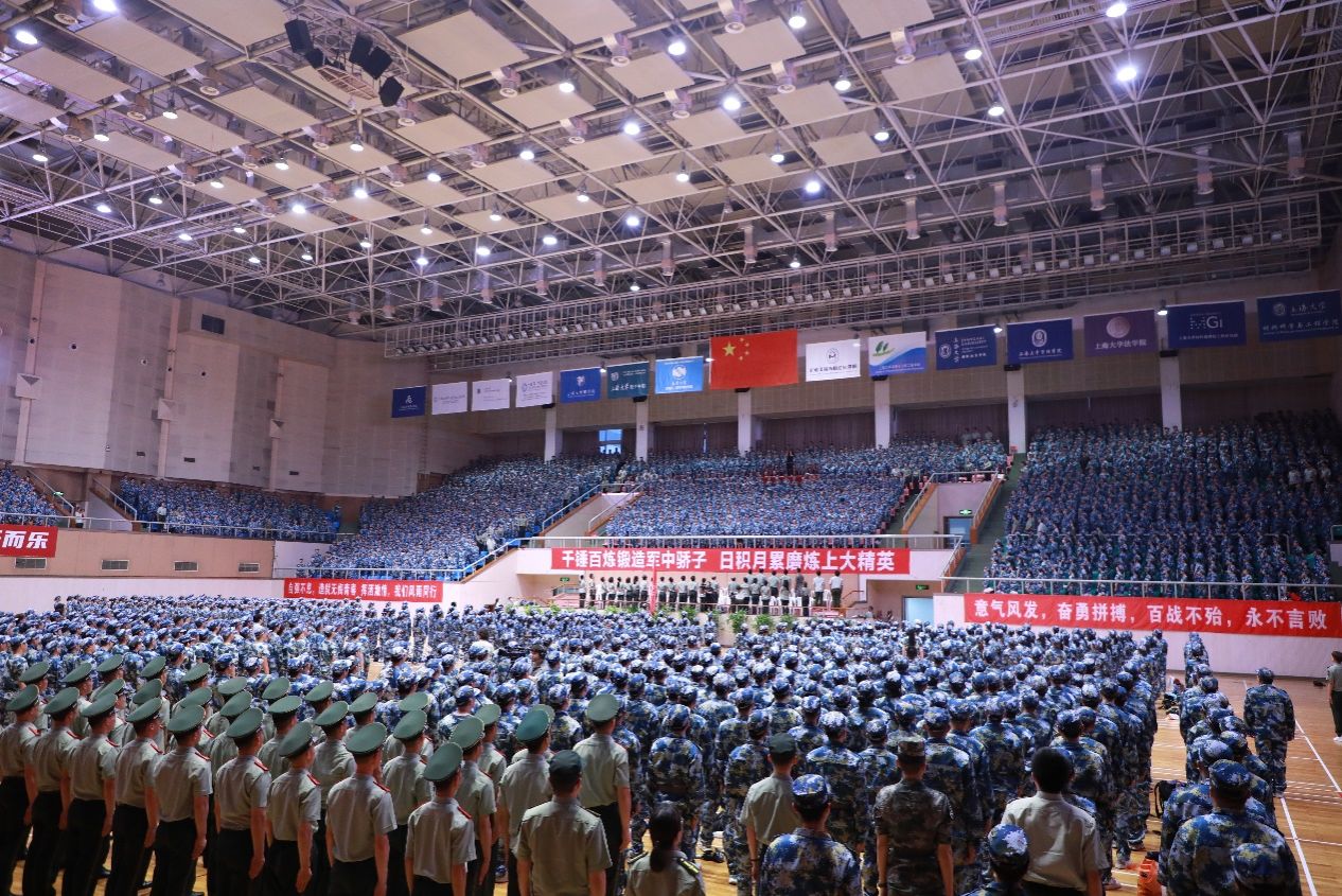 7月7日晚7点,Beat365唯一官方网站2023年本科生军训主干部队入营仪式在宝山校区体育馆举行。