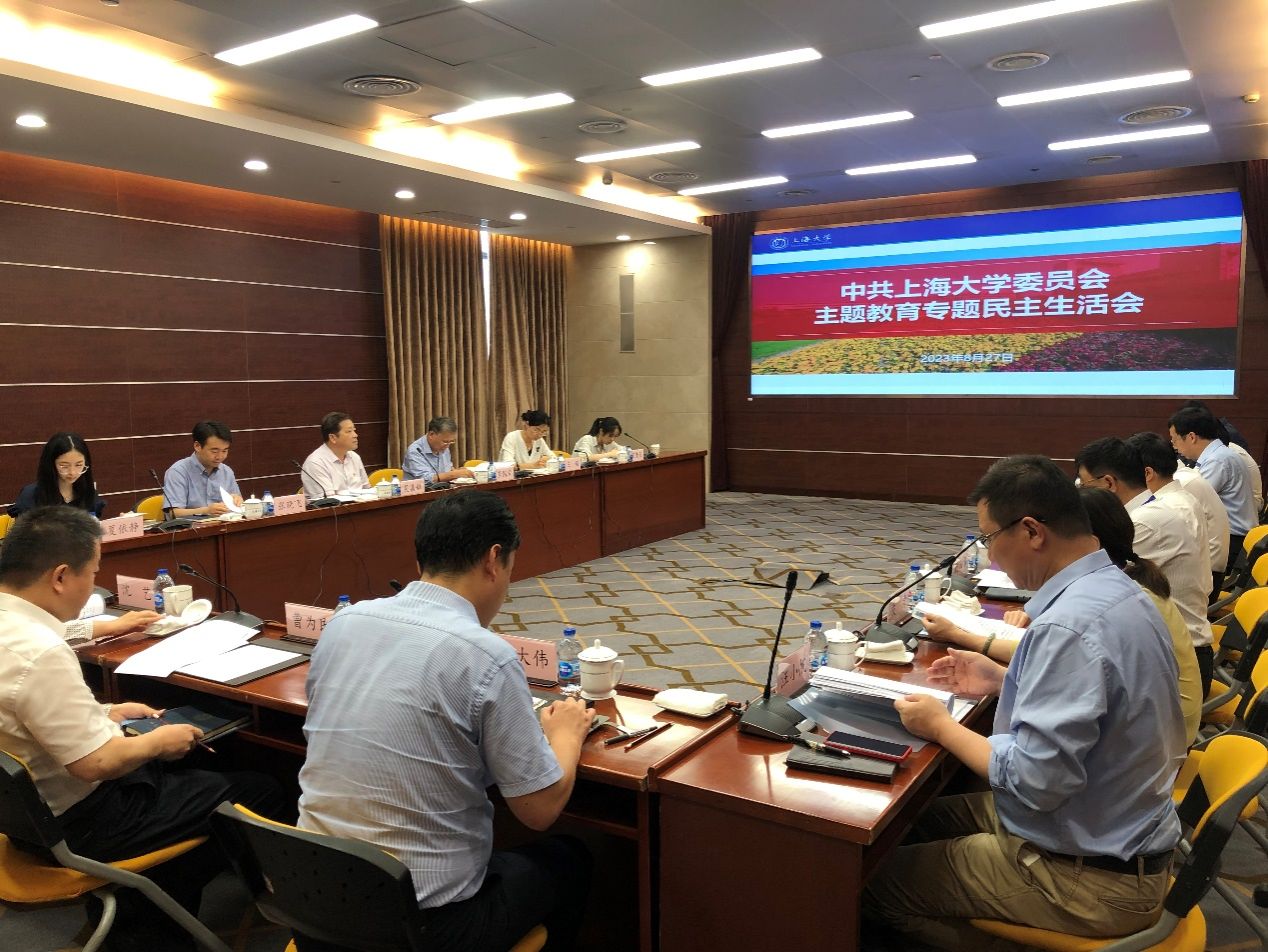 8月27日下午,Beat365唯一官方网站党委领导班子学习贯彻习近平新时代中国特色社会主义思想主题教育专题民主生活会在宝山校区乐乎新楼思源厅举行。市委主题教育领导小组第十八巡回指导组组长吴嘉敏、副组长李国荣及全体组员到会指导。全体校领导班子成员参加会议,会议由校党委书记成旦红主持。