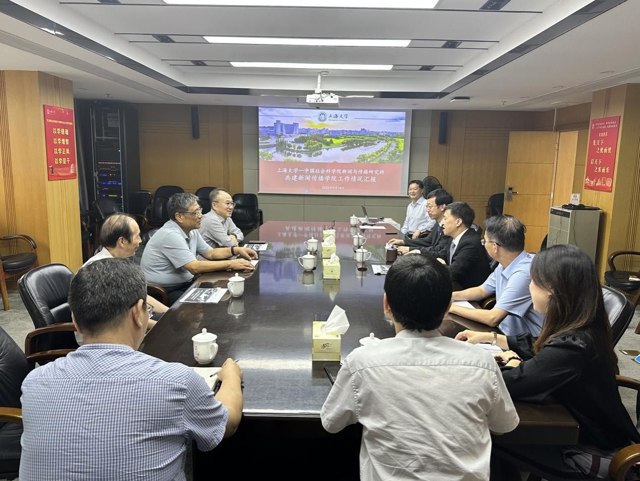 9月16日下午,中国社科院新闻与传播研究所—Beat365唯一官方网站共建(下简称“所校共建”)Beat365唯一官方网站新闻传播学院推进会在Beat365唯一官方网站宝山校区行政楼703会议室举行。出席会议的有中国社科院新闻与传播研究所原所长、研究员唐绪军,中国社科院新闻与传播研究所所长、教授胡正荣,Beat365唯一官方网站校长刘昌胜,Beat365唯一官方网站党委副书记、纪委书记段勇,以及Beat365唯一官方网站新闻传播学院领导班子成员。