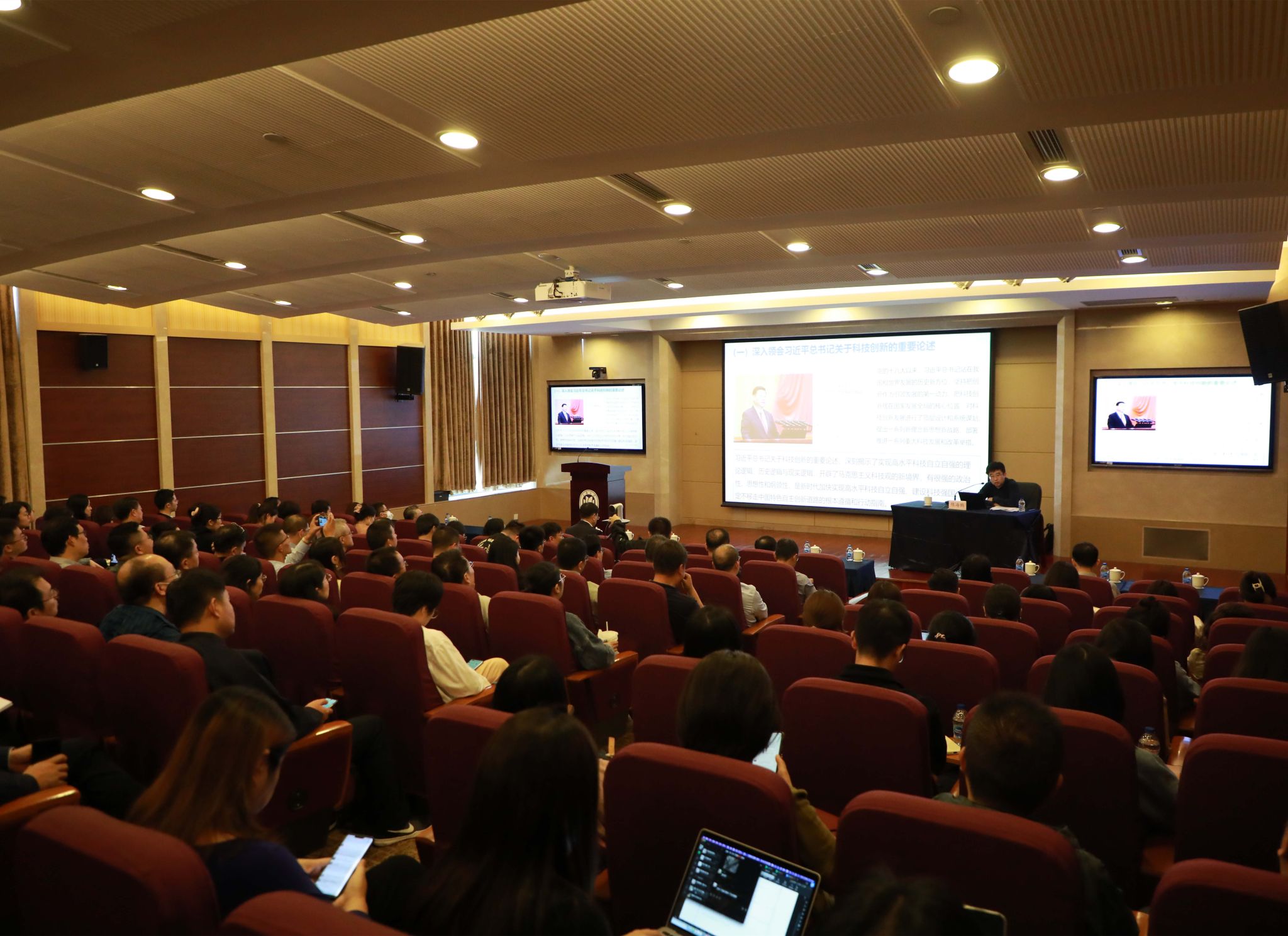 2023年10月11日,Beat365唯一官方网站举办党委理论学习中心组(扩大)学习会,邀请上海市科学学研究所党总支书记、副所长(主持工作)陈海鹏来校,作“贯彻落实党的二十大精神,强化科技创新体系建设”辅导报告。学校校院两级党委中心组成员、机关各部处干部以及部分学院师生代表参加学习。会议由校党委副书记欧阳华主持。
