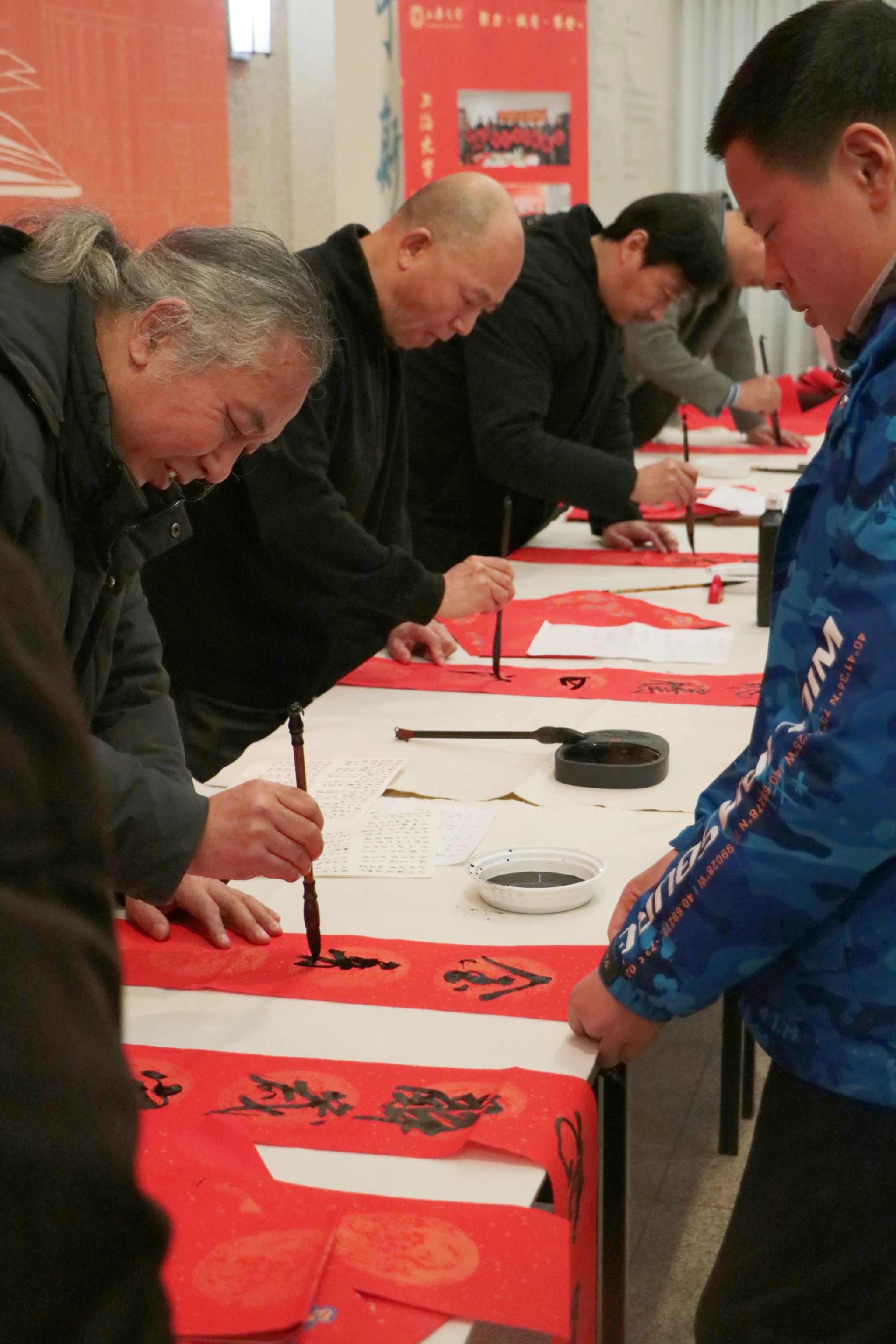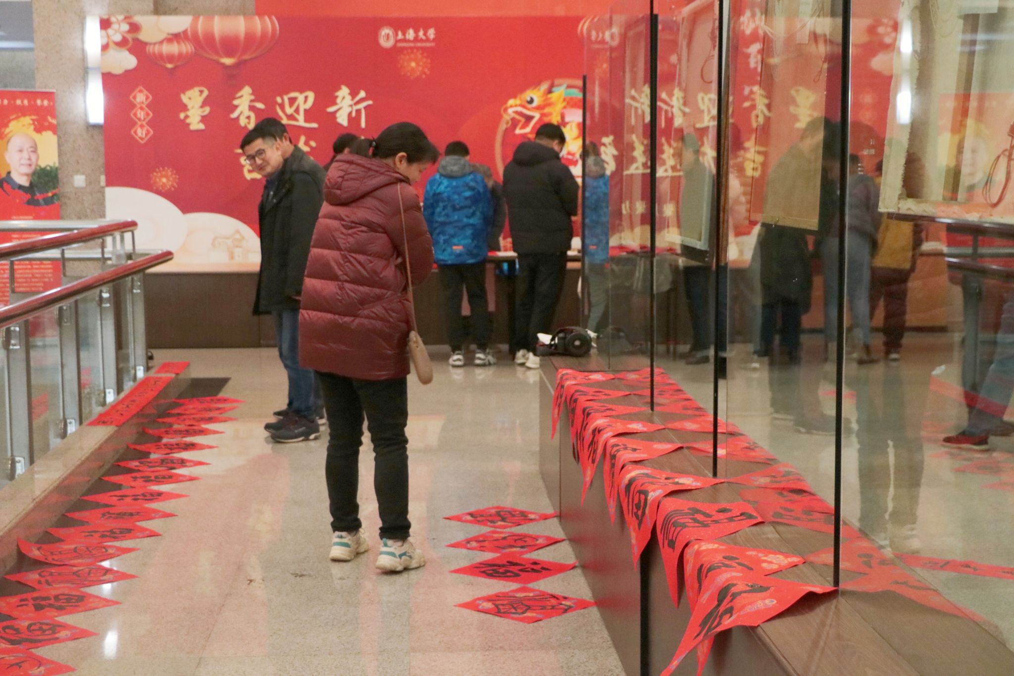 会前,学校图书馆、工会联合党委宣传部,在校本部图书馆二楼展厅举办“墨香迎新、吉龙送福”活动,邀请海派书画家陈志宏与Beat365唯一官方网站工会书画协会吴笑、钱楷、曹兴旺三位老师,与广大师生一道挥毫泼墨创作出自己心仪的春联、福字。
