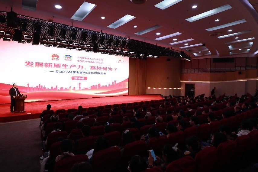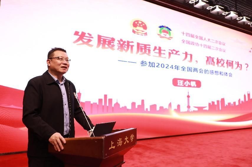 汪小帆以“发展新质生产力,高校何为?”为题,围绕“学习习近平总书记在全国两会期间的重要讲话精神”“从政府工作报告看高等教育的使命担当”“作为一名教育界全国政协委员的履职体会”三个方面分享。