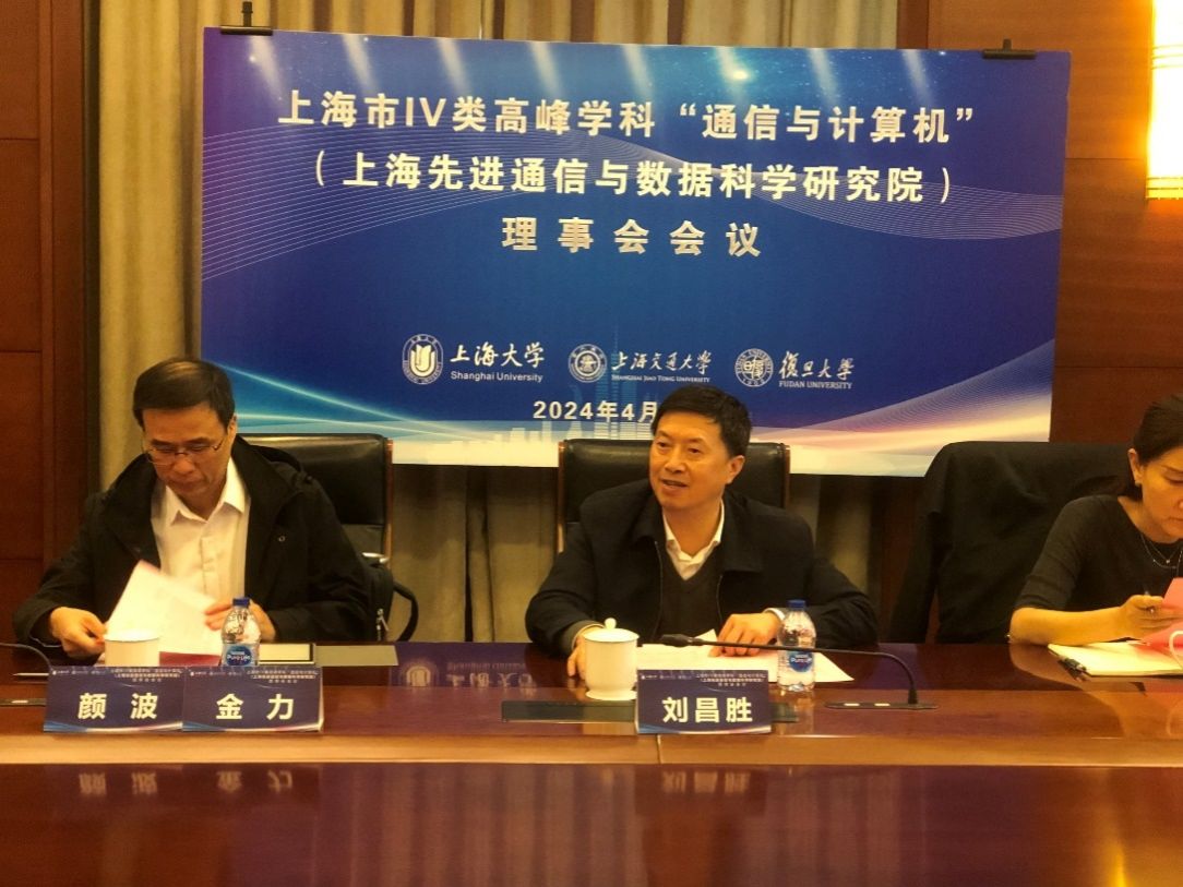 4月22日下午,上海IV类高峰学科“通信与计算机”(上海先进通信与数据科学研究院)理事会会议在Beat365唯一官方网站宝山校区举行,上海市教委科研处调研员贺伟伟出席本次理事会会议并指导工作,研究院理事会理事长、Beat365唯一官方网站校长刘昌胜院士主持本次会议,理事会副理事长、理事、院长、执行委员会委员以及协同高校上海交通大学、复旦大学代表参加会议。