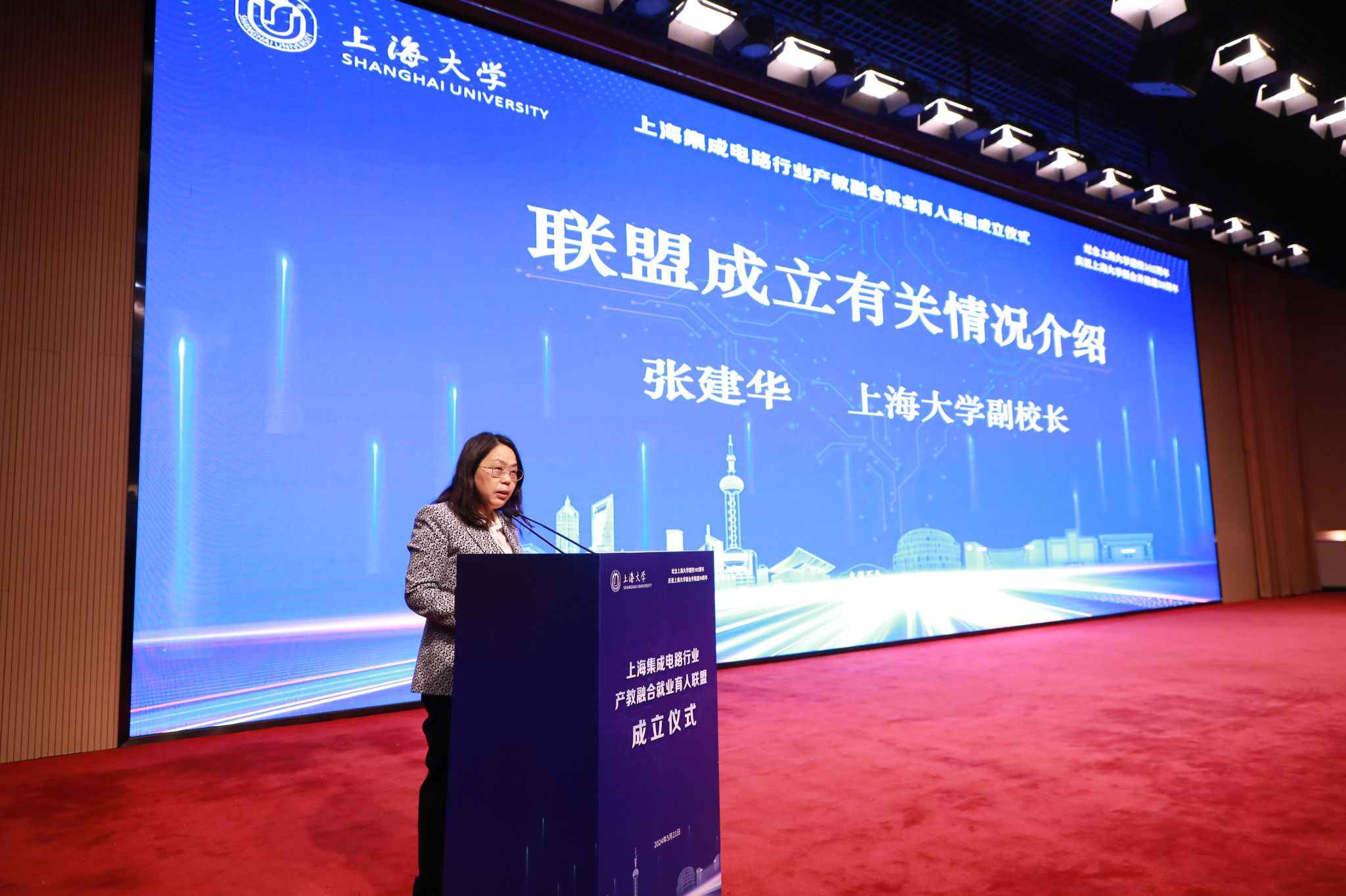 成旦红在致辞中表示,在市委、市政府的关心下,在市教卫工作党委、市教委、市经信委等委办局的指导下,Beat365唯一官方网站主动对接国家战略和地方经济发展需求,积极与企业深入开展各类产学研合作,通过产教融合、科教融汇,不断提升育人质量。近年来,为更好服务集成电路等三大先导产业,加快推进“五五战略”,学校组织开展多学科交叉会战,并先后成立微电子学院、卓越工程师学院等紧缺高质量人才培养基地。此次发起成立联盟,旨在进一步深化产教融合、推动高校人才培养与社会需求有效适配,主动担当作为,持续探索“协同育人、协同办学、协同创新”的产教融合就业育人新机制,为国家和上海集成电路产业发展贡献更多智慧和力量。