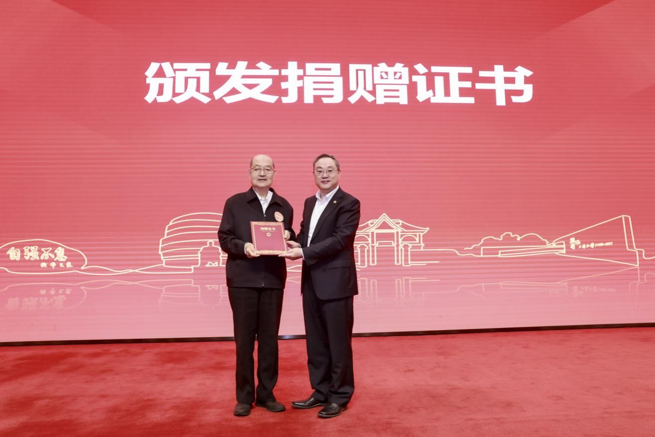 “三代Beat365人,终身Beat365情”,邓伟志教授多年来心系学校教育事业,于2019年设立“邓伟志教育基金”,助力学校人才培养,近期他再次将荣获的上海市哲学社会科学学术贡献奖奖金全额捐赠给母校,成旦红书记为邓伟志教授颁发捐赠证书。