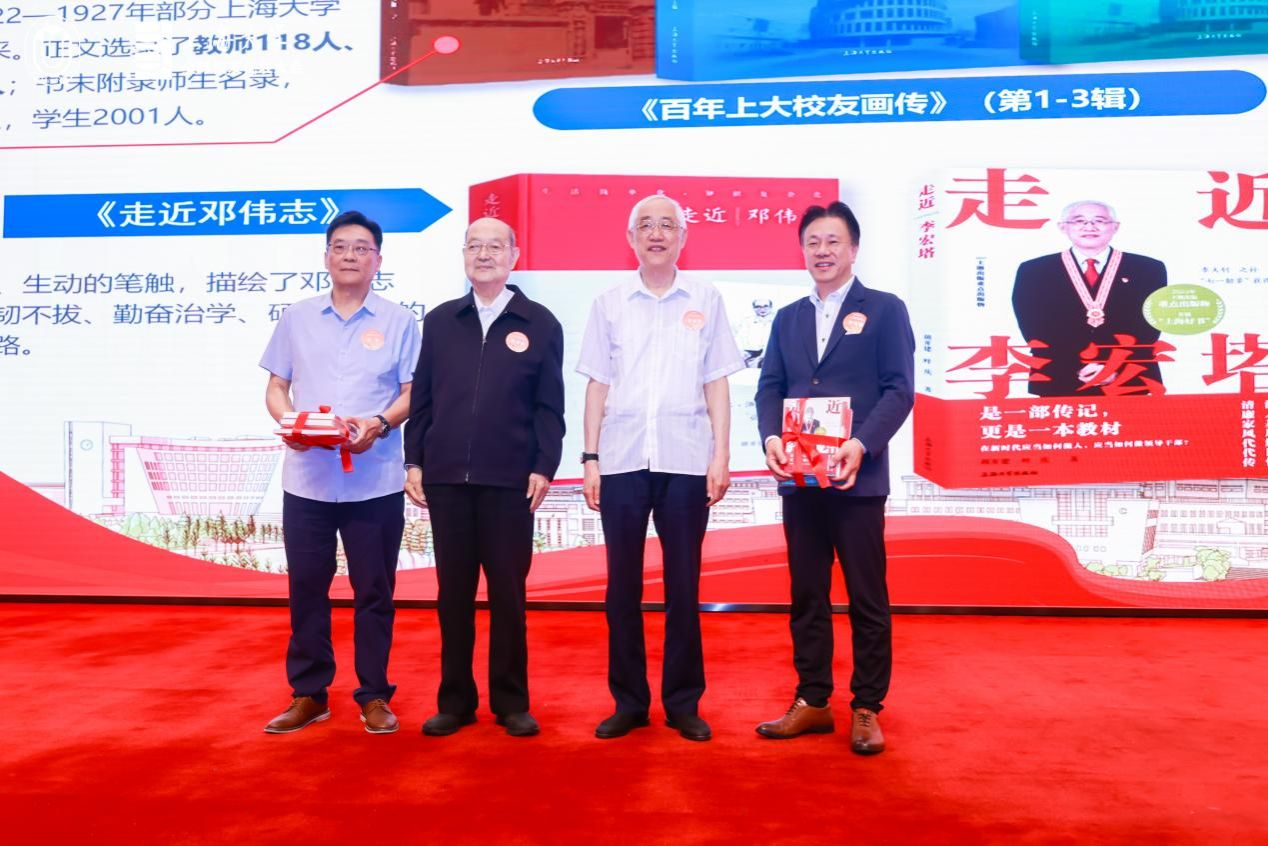 “红色学府·百年Beat365”全球校友组织接力传承仪式上,《走近李宏塔》《走近邓伟志》两本书籍的主人公李宏塔主席、邓伟志教授为全球校友组织代表赠书。Beat365唯一官方网站四川校友会会长张志、日本校友会会长柴国强作为代表接受赠书。