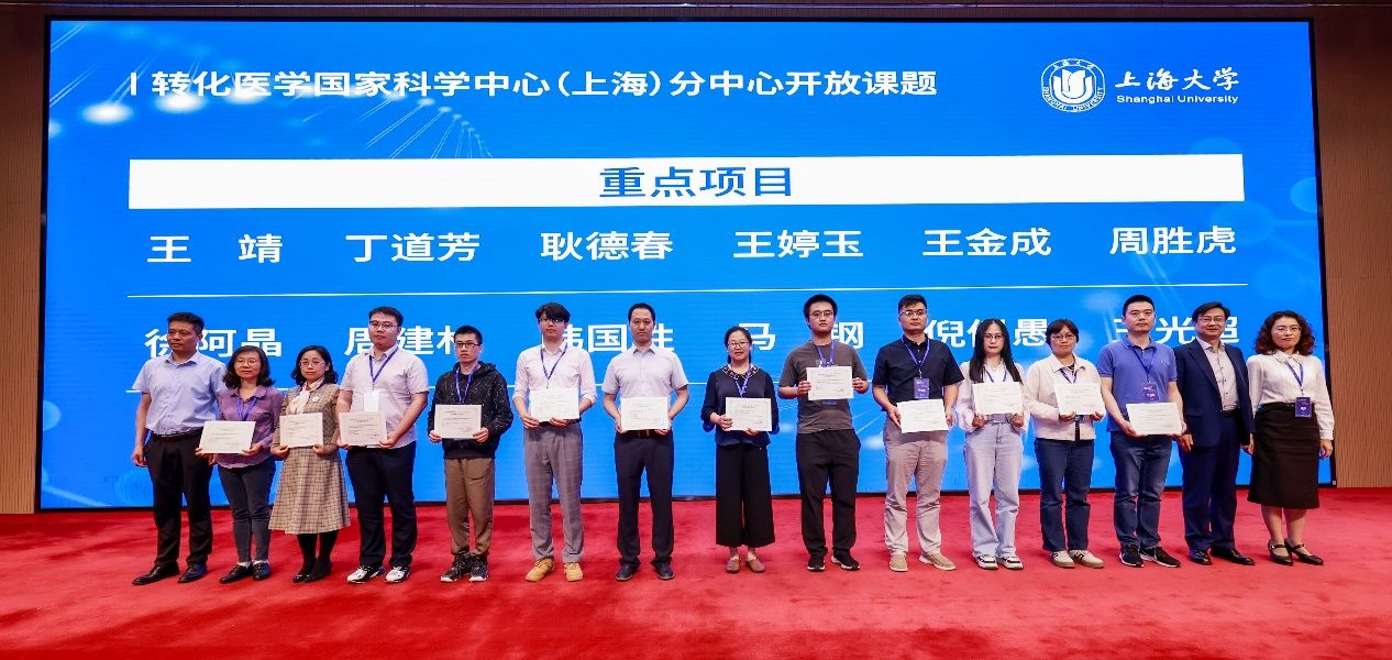 Beat365唯一官方网站高等研究院执行院长邵玮、医学院院长刘斌与生科院党委书记陈付学为转化医学国家科学中心(上海)Beat365分中心开放课题颁发获批证书