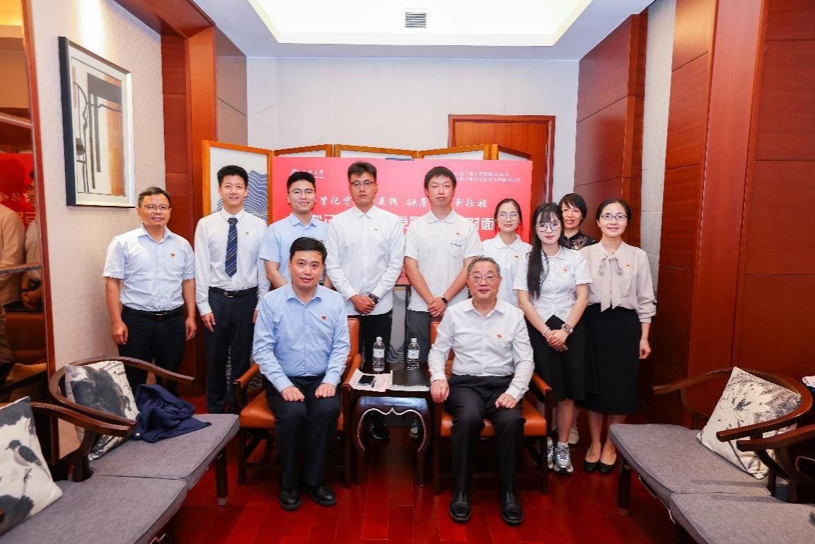会前,成旦红书记与毕业生党员代表座谈,同学们就人生规划、职业发展、在母校的收获以及对母校的建议等方面与书记交流想法。