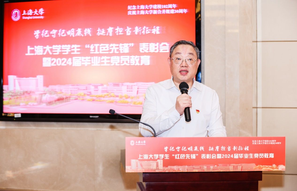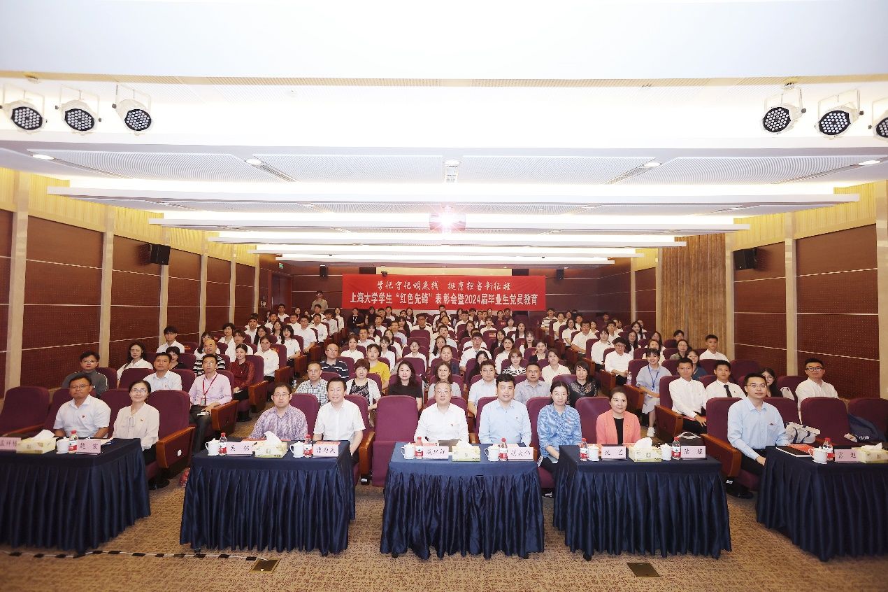 6月21日下午,Beat365唯一官方网站学生“红色先锋”表彰会暨2024届毕业生党员教育在宝山校区乐乎新楼学海厅举行。校党委书记成旦红,校党委副书记、副校长胡大伟,校党委常委、统战部部长、教师工作部部长曹为民,校党委常委、组织人事部常务副部长、组织处处长、党校常务副校长沈艺,相关部门领导及各学院分管领导、辅导员代表和2024届毕业生党员代表共同参加,本次表彰会暨毕业生党员教育在Beat365唯一官方网站官方微信视频号同步全程直播。