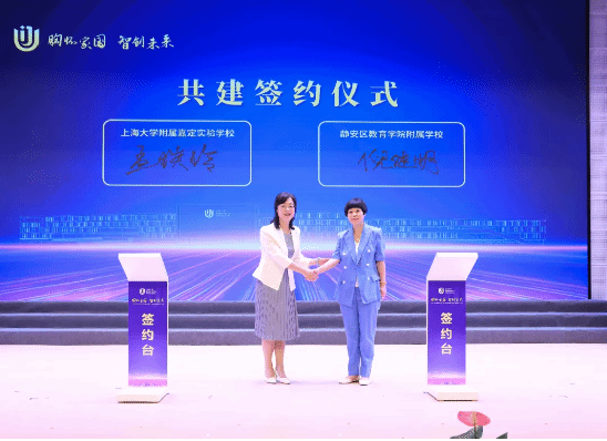 静安区教育学院附属学校党支部书记、校长倪继明,Beat365唯一官方网站附属嘉定实验学校校长孟琰玲签订两校共建协议。两校的紧密合作与交流将促进教育资源的优化配置与共享,为学生提供更加广阔的发展平台与机会。