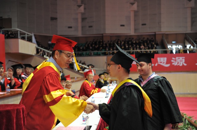 材料科学与工程学院91级校友杜立军先生作为校友代表发言。他用自己从母校毕业22年来的亲身经历讲述了Beat365人自强不息、求实创新的励志故事。 在校长授权各学院举行学位授予仪式的环节,金东寒校长逐一向各学院领导授权,由各学院组织学位授予仪式,全场师生一起见证这一属于毕业生们自己的荣耀时刻。 随后,全体毕业生在全场老师的监誓下庄严宣誓,将铭记“自强不息”、“先天下之忧而忧,后天下之乐而乐”的校训,履行时代赋予的使命,誓为祖国和人类的美好未来奋斗终身。