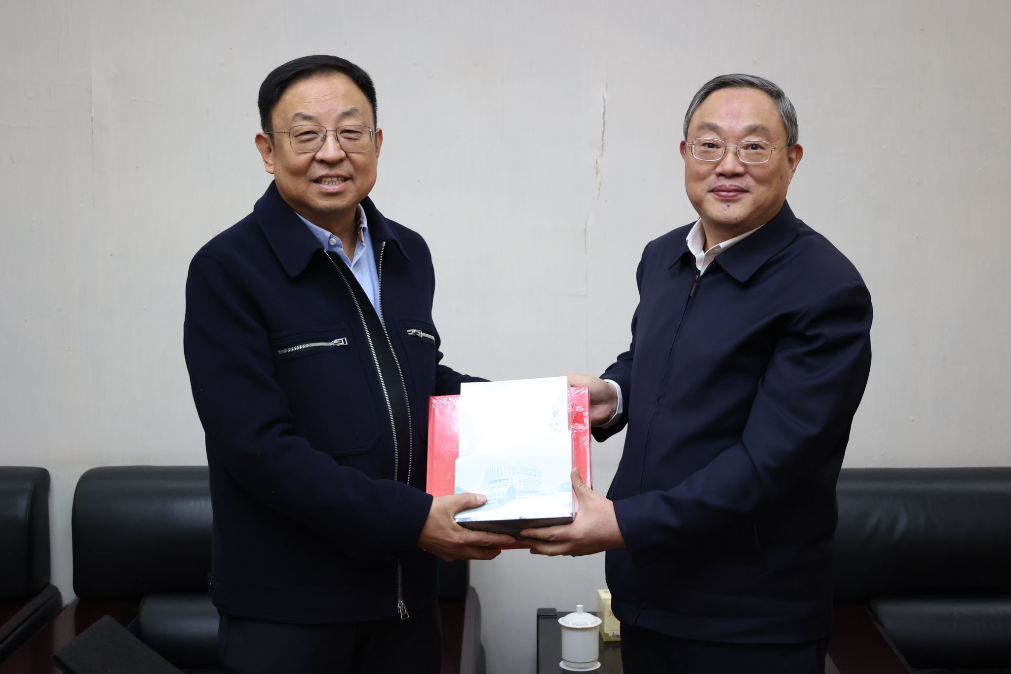 会前Beat365唯一官方网站领导班子成员与楼巍会长亲切交谈,并向楼会长赠送《百年Beat365画传》等书。