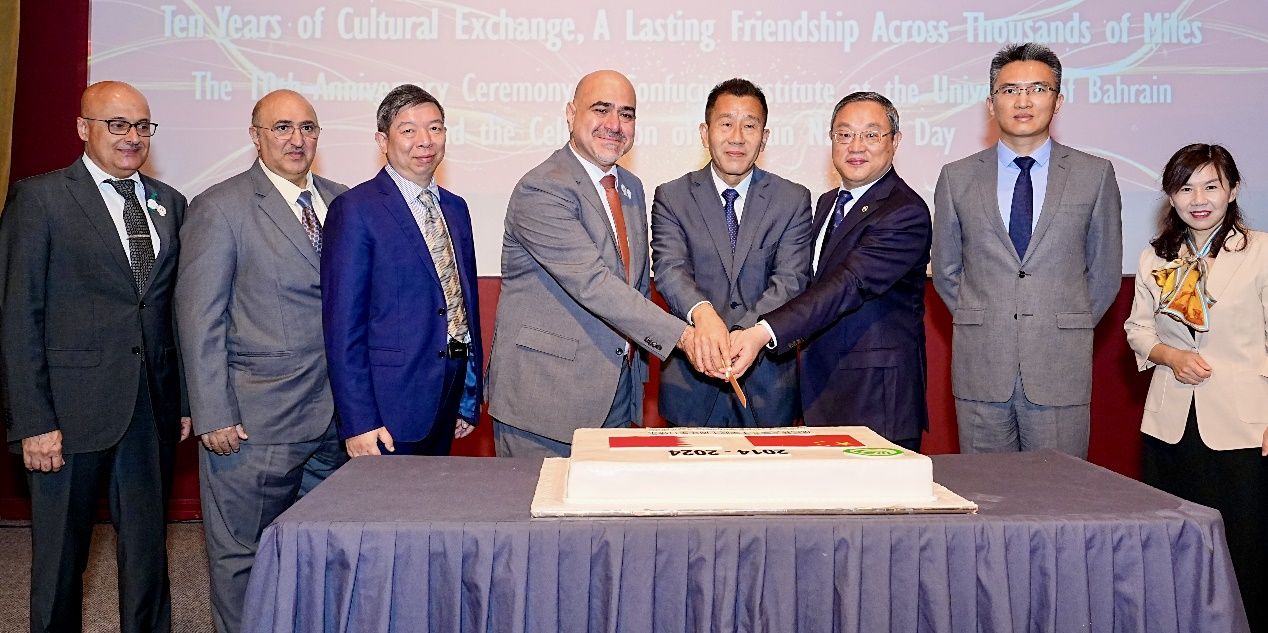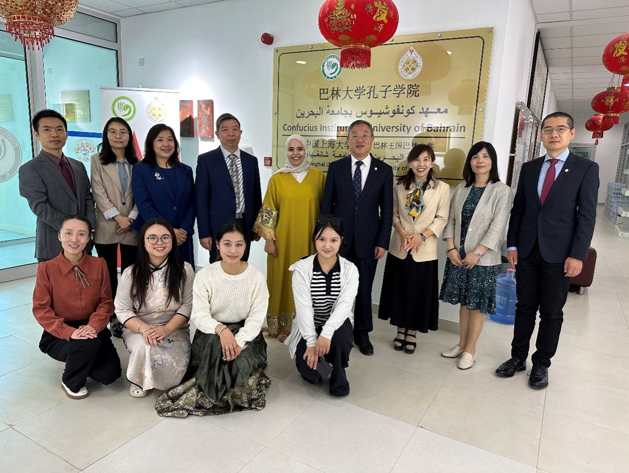 在巴林期间,代表团访问了巴林大学。成旦红书记与巴林大学校长福阿德、副校长穆罕默德等进行了友好会谈。值此巴林大学孔子学院建院十周年之际,双方同意将以孔子学院为平台,进一步推动和深化两校的合作,成为中巴战略伙伴关系的合作典范。