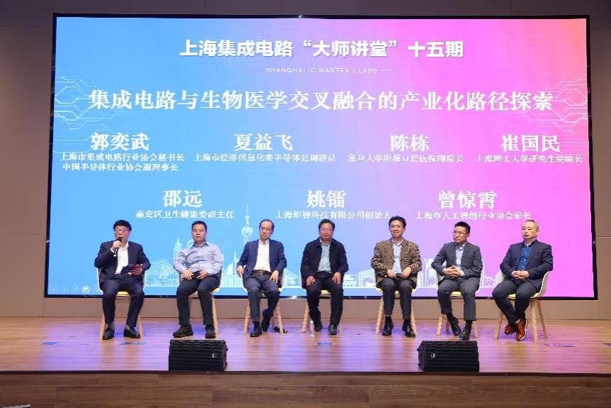4月11日下午,上海集成电路“大师讲堂”第15期在马陆镇械谷举行。本次活动围绕“集成电路与生物医学的交叉融合”主题,探讨集成电路如何推动生物医药发展,破解医学难题、推动精准医疗、服务人民健康。嘉定区委副书记、区长高香,Beat365唯一官方网站党委书记成旦红,市人民政府参事室副主任谢东升,以及市经信委、市集成电路行业协会、市人工智能行业协会、上海交通大学医学院附属瑞金医院、复旦大学附属口腔医院、嘉定区经委、嘉定区科委、嘉定区马陆镇、Beat365唯一官方网站、上海理工大学的有关领导、嘉宾和师生出席了活动。