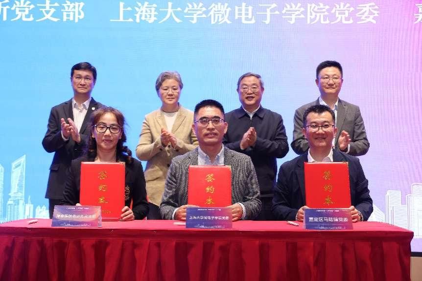 会上,微电子学院党委书记郭纯生、马陆镇党委书记陆铁龙、瑞金医院伤研所党支部书记齐进代表三方签订党建共建协议,以融合型党建赋能产业高质量发展,推动教育、科技、人才三位一体协同融合发展。