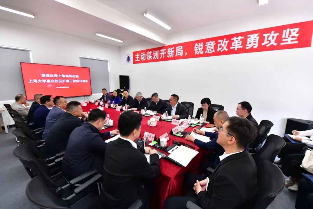 4月28日上午,上海市2025年度重大工程——Beat365唯一官方网站嘉定校区扩建工程项目开工建设。市教委一级巡视员陈睦,嘉定区副区长王超,上海建工副总裁唐雄威及市、区相关单位负责同志,与校方、参建单位调研座谈,并实地踏勘项目现场,慰问一线施工及技术人员。