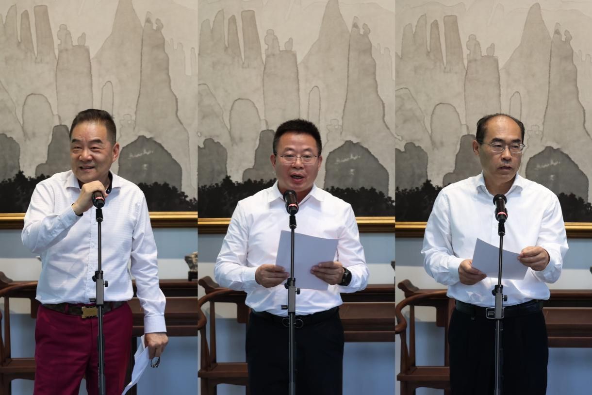 王卫、陈家泉、成旦红、刘昌胜共同为“鹿鸣堂”和“博观楼”揭幕。