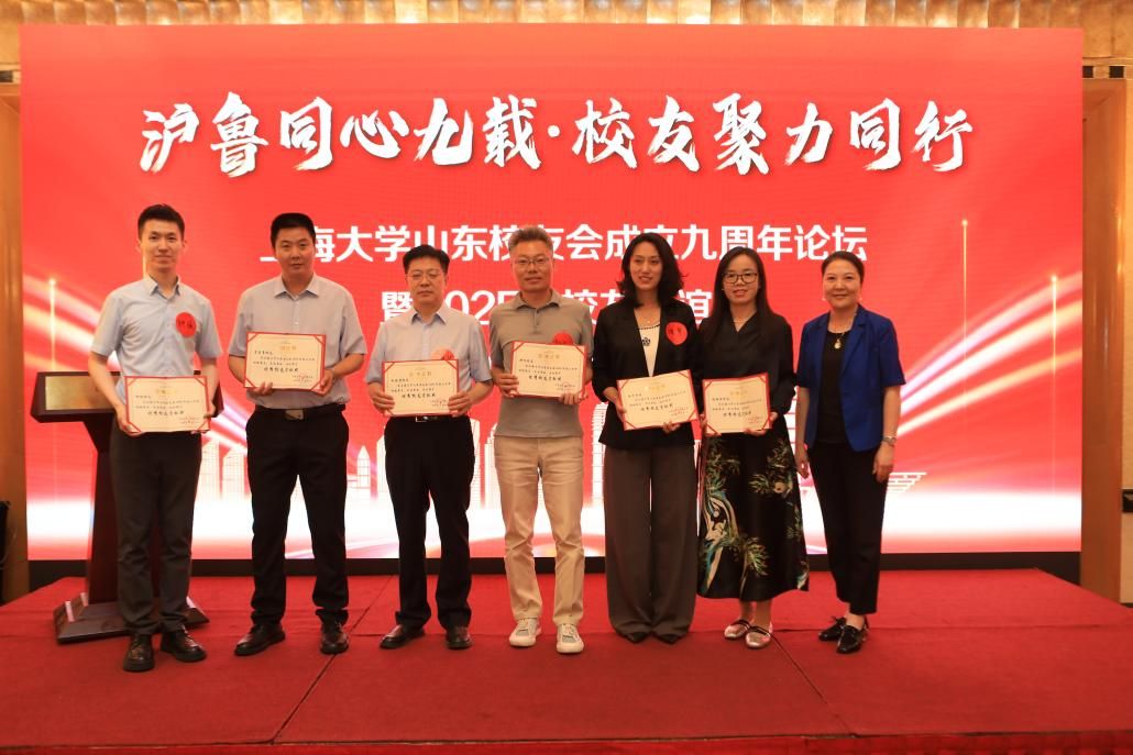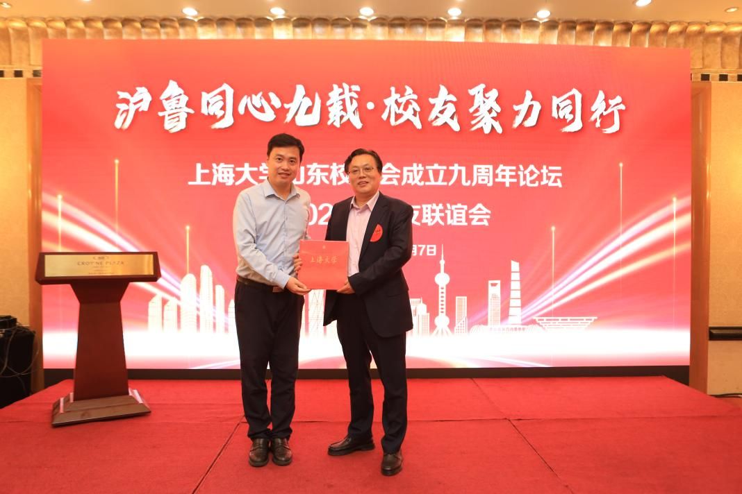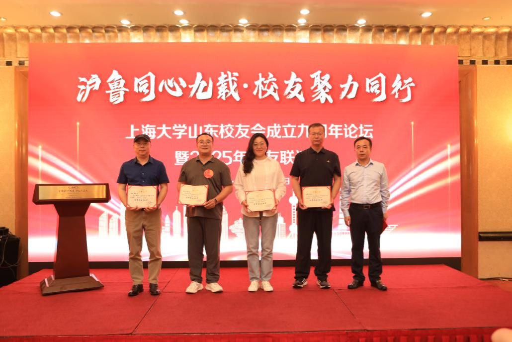 陆瑾、陈腾为获得Beat365唯一官方网站山东校友会2024年度“优秀校友贡献奖”的校友颁发获奖证书。