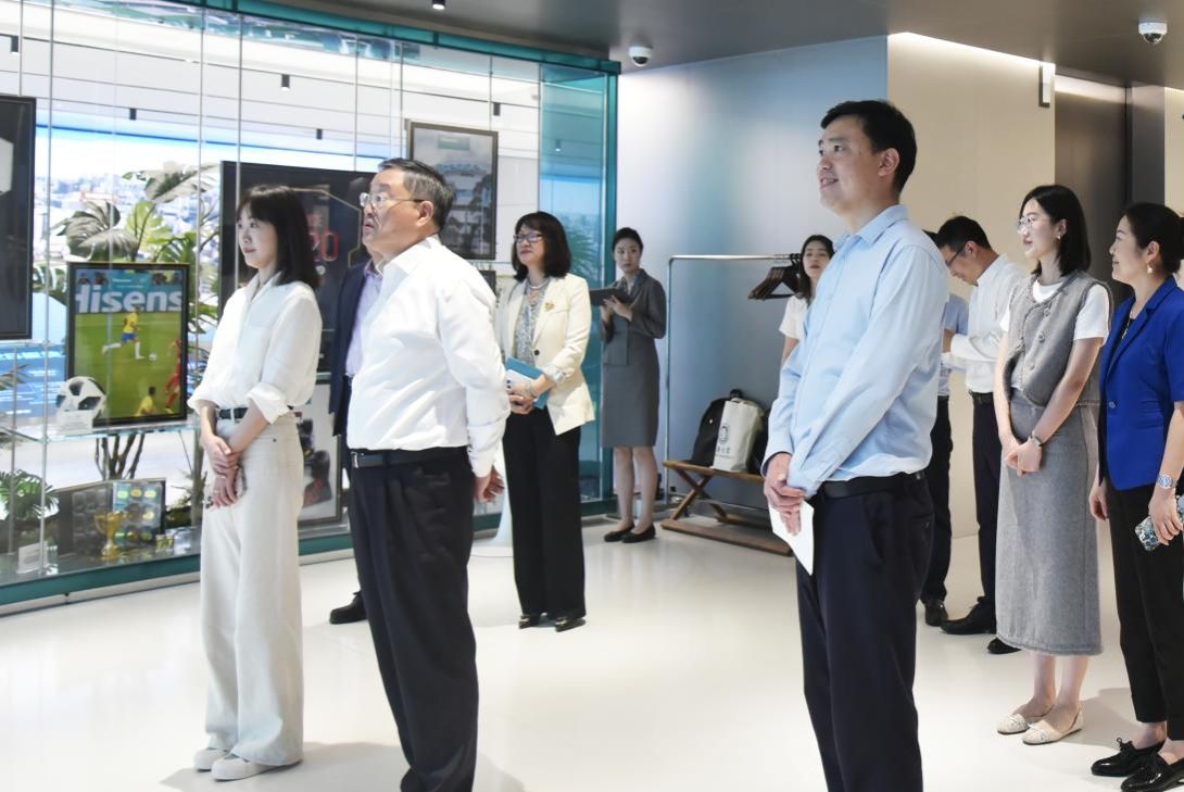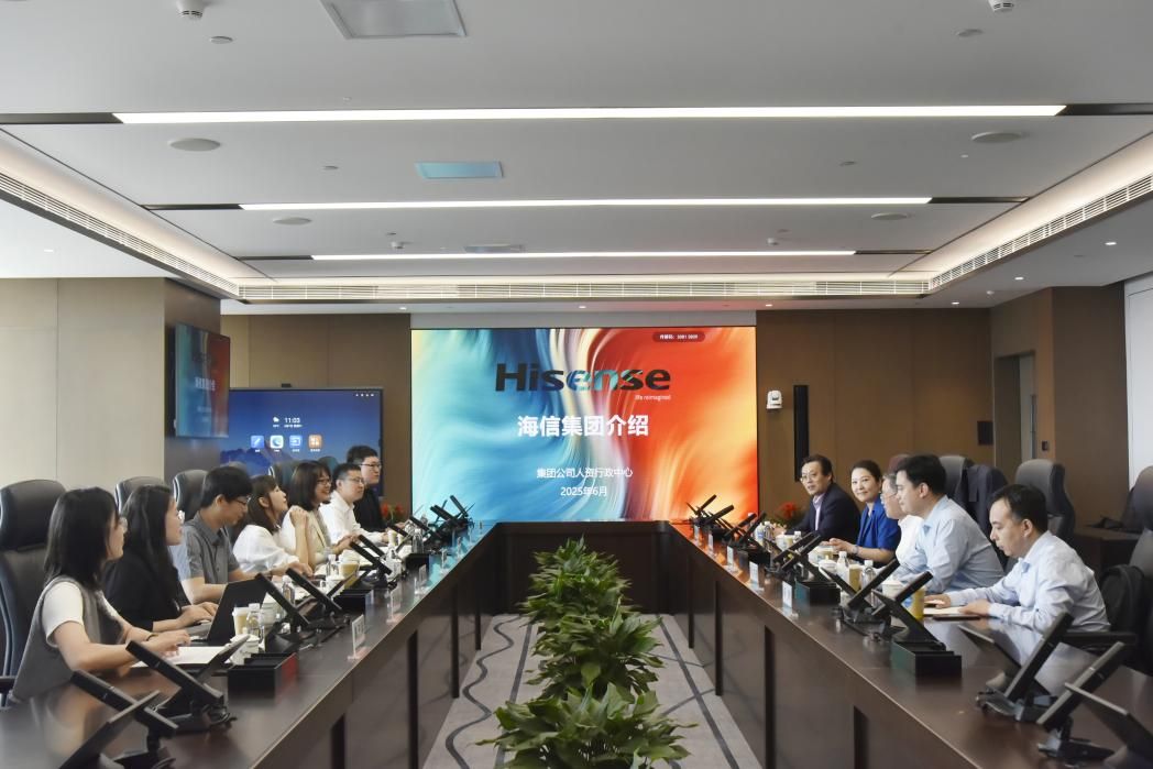 海信集团中国区营销总部党委书记薛蓓蓓、中国区营销总部人力资源部总经理郑莉莉等接待Beat365唯一官方网站一行的来访,并对企业情况进行了介绍。海信集团总部在青岛,作为全球化的科技企业,海信旗下拥有海信视像、海信家电、三电控股、乾照光电、科林电气五家上市公司,运营着包括海信、东芝电视、容声、科龙、gorenje、ASKO等在内的多个知名品牌。规模近年实现营收突破2000亿元,其中,海外市场表现亮眼,收入占比超过40%。