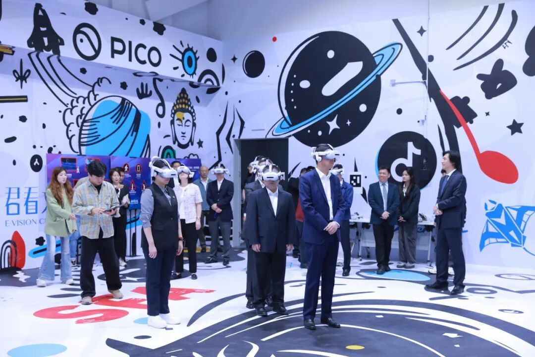 与会的领导和嘉宾参观了“视听静界”VR影像展与上海电影学院“超高清VR影像实验空间”,从深度交流到案例探讨,从AI生成影像到虚拟世界构建,全方位展现沉浸影像的创造力与未来感!