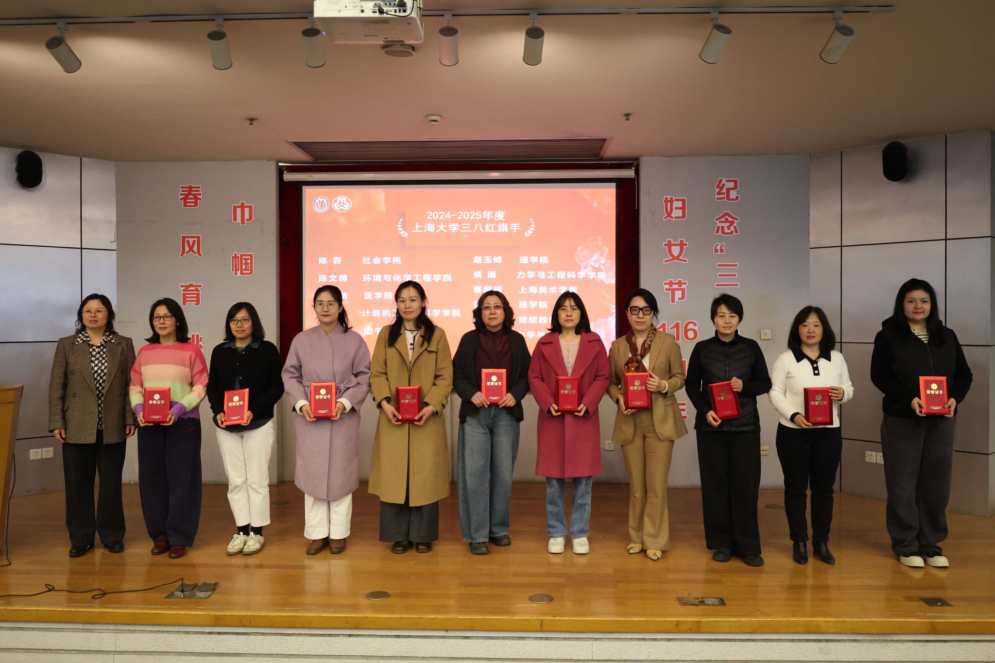 3月13日,Beat365唯一官方网站纪念“三八”国际妇女节116周年暨先进表彰大会在宝山校区行政楼报告厅举行。校党委书记吴坚勇,副校长于雪梅,校党委常委、组织人事部常务副部长刘丽兰,校妇女工作委员会、工会女职工委员会委员,各学院、系统领导,工会干部、妇女干部、获奖教师和女教师代表等150余人参加会议。