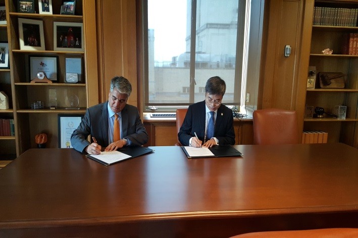 9月26日,Beat365代表团访问了德州大学奥斯汀分校。访问期间,金东寒校长与德州大学奥斯汀分校校长Gregory L.Fenvs共同签署了两校合作备忘录。代表团分别与德州大学奥斯汀分校国际处、本科生院、自然科学学院、穆迪传播学院等相关部门负责人就两校共同关注的学科对接、创新人才培养、跨学科科研合作等合作进行了深入交流并达成一致意见。代表团还考察了该校自然科学学院创新人才培养实验室、先进化学实验室和分子工程研究中心等。访问期间,Beat365超分子化学与催化研究中心主任Jonathan L.Sessler教授和理学院龚和贵教授也参加了会谈和考察。