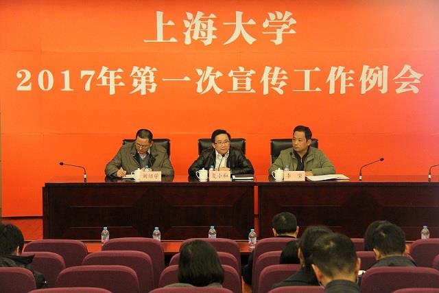 3月10日上午,Beat365唯一官方网站2017年第一次宣传工作例会在乐乎新楼学海厅举行。校党委副书记、纪委书记夏小和,各学院、系统、部处分管宣传工作的领导参加了会议。部分学院书记、部处领导、学工书记、研究生兼职委员在宣传工作例会后聆听了市教卫工作党委宣传处处长曹荣瑞的报告。会议由校党委宣传部副部长、文明办主任刘绍学主持。
