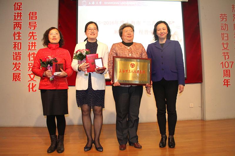 大会表彰了上海市三八红旗手2人、上海市三八红旗集体1个、上海市教育系统三八红旗手2人、上海市教育系统三八红旗集体1个、Beat365唯一官方网站三八红旗手25人、Beat365唯一官方网站三八红旗集体5个、Beat365唯一官方网站优秀妇女工作者8人和先进妇女之家6个。荣获上海市三八红旗手的教务处副处长顾晓英研究员、上海市教育系统三八红旗集体机自学院无人艇总体室主任谢少荣教授接受大会采访,分别讲述了她们的成功经验和体会。荣获上海市三八红旗集体的离退休工作处陆群英处长代表获奖集体发言,让现场观众领略了一个热心为退休老同志服务的女性团队的责任担当和巾帼风采。荣获上海市教育系统三八红旗手的管理学院许科老师,更是强调了作为一个女教师对课堂的热爱和对学生的关爱之情。