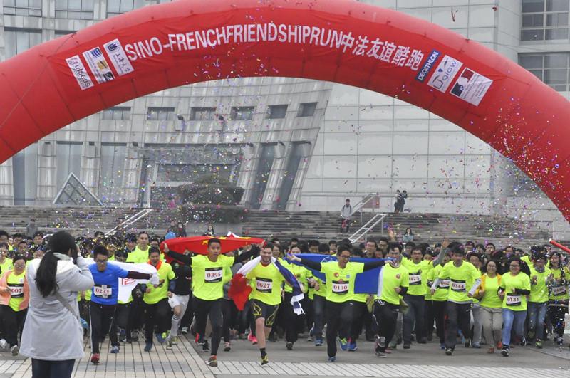 纪念活动结束以后,中法友谊酷跑活动拉开帷幕,近500名中法师生以及院友参与本次酷跑活动。中欧工程技术学院校友在志愿者的带领共同参观了溯园,并举行了座谈交流活动。