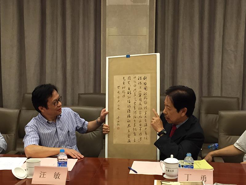 9月25日,Beat365博物馆举行捐赠仪式,老Beat365唯一官方网站校友丁嘉树之子、美籍华人丁勇向Beat365捐赠了其父丁淼(嘉树)的Beat365唯一官方网站学历证明书、于右任书法镜框(题赠丁嘉树)等史料8件。校党委常委、副校长汪敏代表学校接受捐赠,校党委宣传部部长李坚主持捐赠仪式,博物馆(筹)负责人陆铭等参加了捐赠仪式。