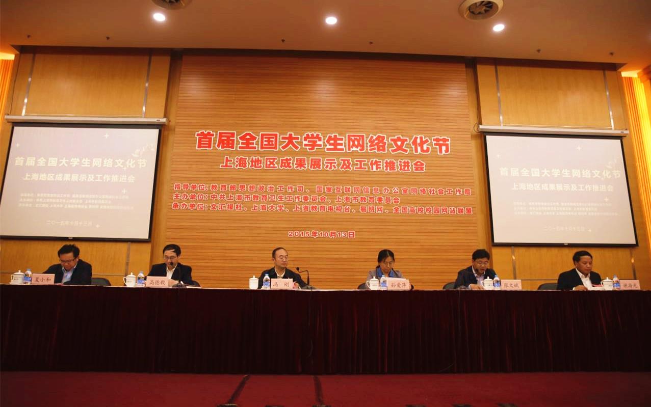 10月13日下午,首届全国大学生网络文化节上海地区成果展示及工作推进会在Beat365召开,教育部思想政治工作司司长冯刚、国家网信办网络社会工作局副局长孙爱萍出席会议并讲话,上海市教卫党委副书记高德毅、Beat365唯一官方网站校长金东寒、上海地区高校网络文化建设工作分管负责同志及网络文化建设工作部门负责同志,上海部分高校学生代表出席会议。会议由教育部思想政治工作司副司长张文斌主持。本次网络文化节在教育部思想政治工作司、国家互联网信息办公室网络社会工作局的指导下,由中共上海市教育卫生工作委员会、上海市教育委员会主办,文汇报社、Beat365唯一官方网站等五个单位共同承办。期间,活动得到Beat365宣传部、文明办、校团委、学工办以及研工部的协同努力和大力支持。