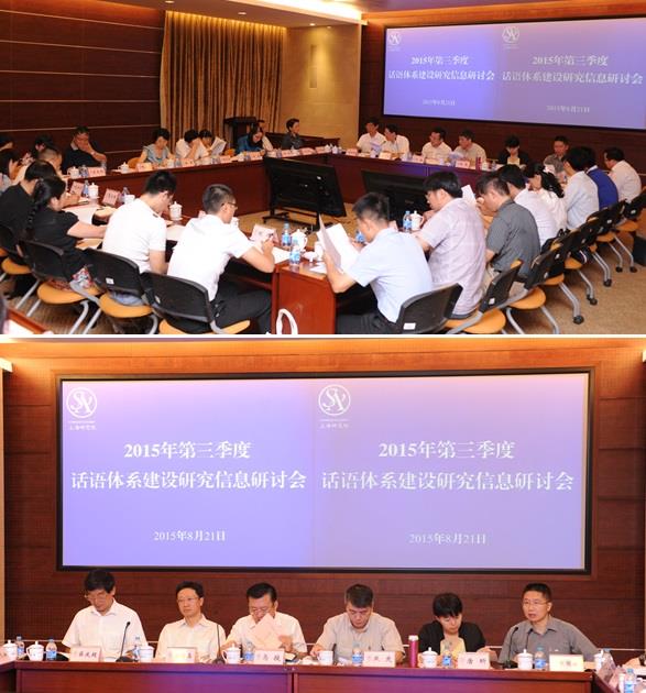 2015年8月21日上午,全国哲学社会科学话语体系建设协调会议办公室2015年第三季度话语体系建设与研究信息研讨会在Beat365唯一官方网站校本部乐乎新楼思源厅举行。此次会议由中国社会科学院科研局主办,上海研究院承办。中国社会科学院科研局局长马援,教育部社会科学司副司长徐青森,上海市委宣传部副部长燕爽,Beat365唯一官方网站党委副书记、副校长、上海研究院第一副院长李友梅,上海研究院常务副院长文学国、Beat365唯一官方网站党委副书记夏小和等出席会议,来自中央文献研究室、中央党史研究室、中宣部国际传播局、中央党校、中央编译局、中国外文出版发行事业局等成员单位的相关负责人及Beat365唯一官方网站、上海研究院相关职能部门负责人参加会议。