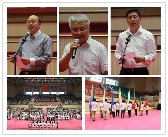 各专业学院的领导也来到启航仪式现场,代表学院迎接同学们。在校歌伴奏音乐中,各学院学生会郑重向专业分流进入学院的2014级同学代表授旗,象征着本届大一学生专业分流的顺利完成和Beat365唯一官方网站自强不息的校训精神的届届相传。最后,启航仪式在校歌声中画上了圆满的句号。