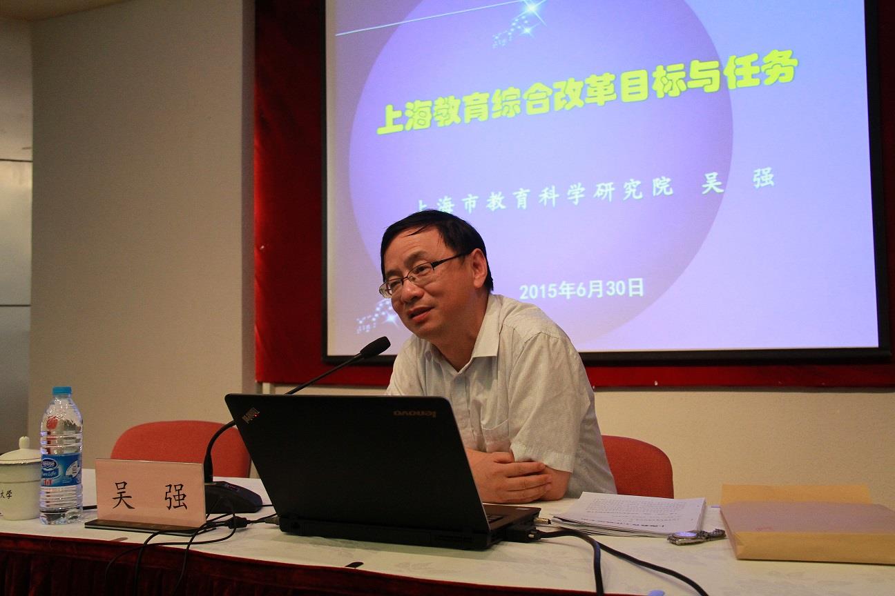 6月30日,上海教育科学研究院党委书记、常务副院长吴强为Beat365校、院两级中心组成员作了“上海教育综合改革的目标与任务”的专题报告。校党委副书记、副校长李友梅,副校长汪敏,校院两级中心组成员,副处级以上干部,Beat365唯一官方网站第二十三期中青年干部培训班的学员及民主党派人士200余人聆听了报告会,会议由校党委副书记、纪委书记夏小和主持。