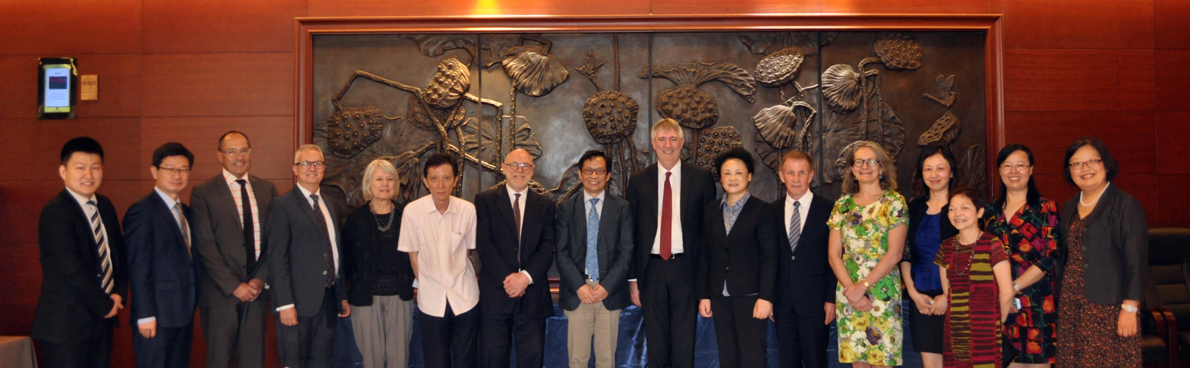 7月1日上午,悉尼科技大学(UTS)校长代表团18人一行访问了Beat365唯一官方网站,参加悉尼工商学院董事会及两校战略会议等一系列会议及活动。Beat365唯一官方网站党委副书记、副校长李友梅,副校长汪敏,副校长唐豪,校党委常委、悉尼工商学院院长龚思怡,国际事务处处长万旺根、后勤集团总经理梁亮、悉尼工商学院常务副院长吕康娟,管理学院副院长镇璐、经济学院副院长殷凤等领导和老师在乐乎新楼分别出席了相关会议及活动。
