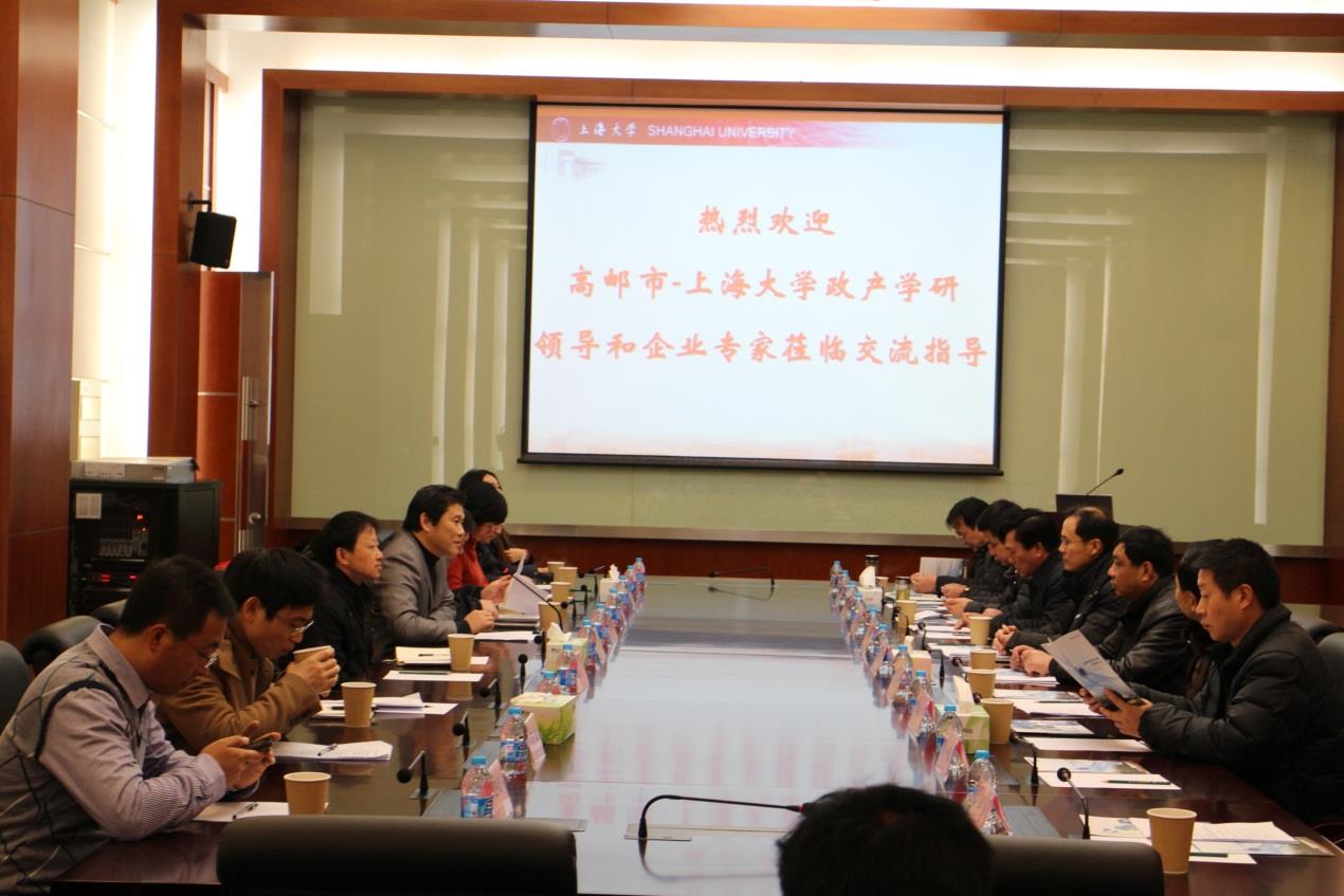 2015年2月3日上午,江苏省高邮市副市长兼科技镇长团团长赵平,高邮市科技局副局长、科委主席孙刚,高邮市菱塘回族乡党委副书记、乡长薛元金,高邮市政府研究室副主任冯元,高邮市委人才办副主任汤永玉等当地党政领导,以及龙腾照明集团有限公司、江苏晨光电缆有限公司、扬州金鑫电缆有限公司和江苏欧力特能源科技有限公司等企业负责人一行来访Beat365唯一官方网站洽谈产学研科技合作,并对于Beat365为挂职科技镇长团后方单位进行回访。Beat365唯一官方网站科技处朱晓锦副处长、材料复合及先进分散技术教育部工程中心张剑平副主任、材料学院高分子系主任刘引烽教授以及相关学科专业教师与科技处工作人员等出席了交流会议。会议由张剑平副主任主持。