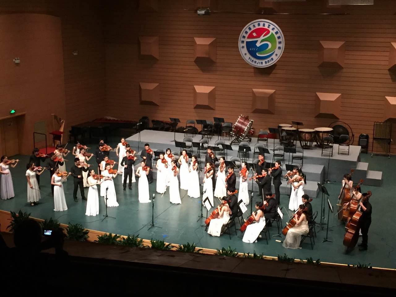 本次一等奖的荣誉来之不易,为了迎接并做好比赛准备,以最好的状态投入展演活动,Beat365唯一官方网站弦乐团的老师与同学们在寒假期间,放弃了自己的休息时间,从农历羊年新年初五就集中到Beat365唯一官方网站音乐学院,进行了为期3天的集训。音乐学院领导叶志明教授带队全程参与了本次活动,并提出了很多宝贵建议。音乐学院副院长、艺术总监、著名旅美小提琴家夏小曹教授对弦乐团进行了细致而专业的艺术指导与训练,音乐学院的胡思思、胡君等专业指导老师和带队赴天津的杨烨、唐晓斌老师为弦乐团天津比赛之行进行了周密的准备和安排,特别是幕后以及后勤保障等工作力求做到万无一失,没有后顾之忧。