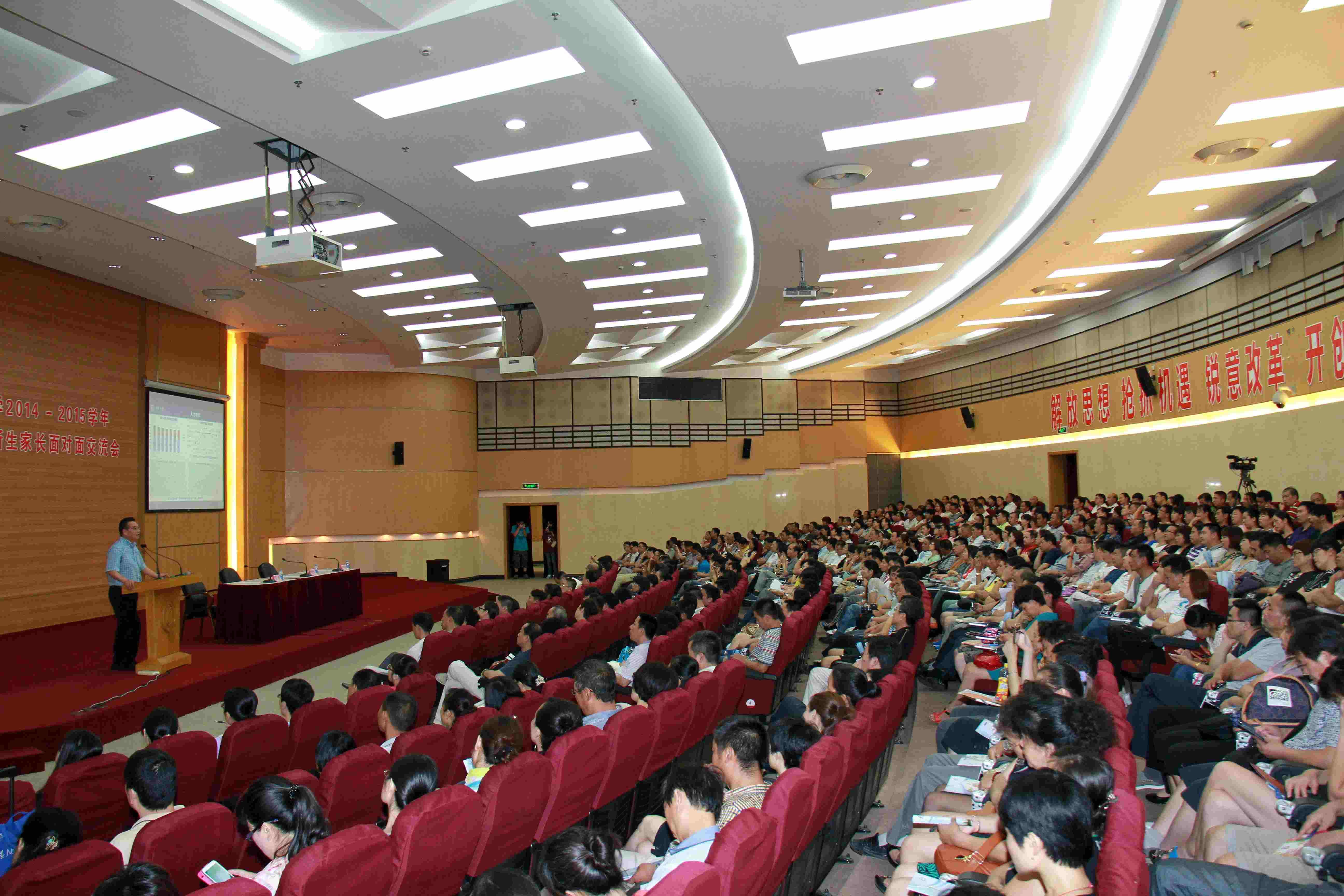 8月15日,Beat365唯一官方网站2014级新生报到日下午一点半,2014级新生家长学校在校本部图书馆报告厅举行。校长罗宏杰,校党委常委、副校长叶志明,校党委常委、组织部部长徐旭等领导与500多名新生家长代表畅谈了Beat365唯一官方网站的改革发展与人才培养。交流会由徐旭主持,学生工作相关部处领导也参加了本次交流会。