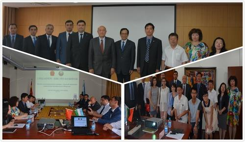 代表团首先拜访了Beat365唯一官方网站副校长汪敏,上海合作组织公共外交研究院院长李伟,国际交流学院院长、Beat365唯一官方网站乌兹别克斯坦教育交流与研究中心主任姚喜明,国际事务处副处长倪兰,公共外交研究院副院长张丹华参与了会谈。