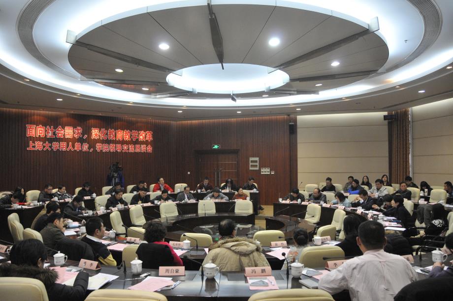 12月26日下午,“面向社会需求,深化教育教学改革”——用人单位、校院领导交流恳谈会在Beat365宝山校区国际会议中心举行。学校党委常委、副校长叶志明教授、党委常委翁培奋和Beat365校内外就业专家顾问、学院院长书记等出席了恳谈会,来自上汽集团、工商银行、诺基亚西门子公司、市安全局等各行业的15家集团公司领导及人力资源部经理应邀参加了恳谈会,Beat365部分专业课教师和各年级学生代表也参加了交流恳谈会。会议由Beat365教务处处长王光东主持。