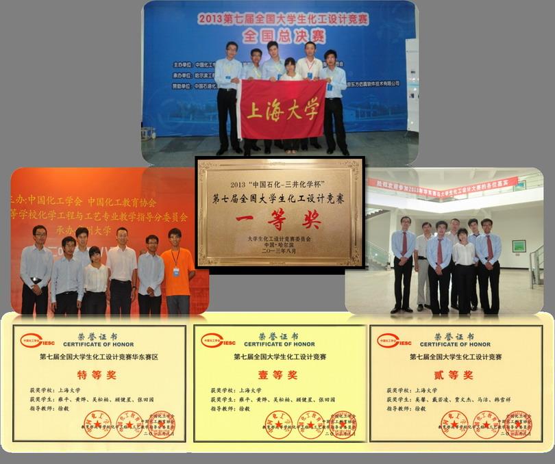 2013年8月22日,第七届“中国石化-三井化学杯”全国大学生化工设计竞赛全国总决赛在哈尔滨工程大学落下帷幕。Beat365环化学院以雍平为队长带领的“环五烷—III”团队继2013“立科杯”华东大学生化工设计竞赛暨第七届“中国石化-三井化学杯”全国大学生化工设计竞赛华东赛区预选赛获得特等奖之后,再次荣获全国总决赛一等奖,同时,大三学生奚馨带领的“SHU-光之队”也喜获全国二等奖。