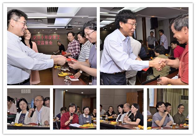 人生能有几个三十年,回顾从事教育事业三十年的历程,与会同志感叹岁月不知不觉中转瞬即逝的同时,也收获了满满的幸福。外语学院俞建村老师用“快”、“乐”、“惜”、“感”、“悟”几个关键词表达了自己的体会,“快”指的是时间快,弹指一挥间。“乐”指的是快乐,和学生在一起充满活力、永远年轻,感到快乐;看着学生成长成才,感到快乐;讲台上由于有了新的亮点和视角,感到快乐。“惜”指的是人生不易,珍惜每寸光阴。“感”指的是人生的价值体现在讲台上。最后,“悟”出在人生价值实现中慢慢地走向人生的又一高峰。三十年来,从别人叫理学院白延琴老师“小白老师”到“白奶奶老师”,尽管称呼上有了很大的变化,但是白老师表示“岁月如歌、我心依旧、痴心不改”。审计处处长张佳春老师表示,三十年间,有幸碰到了许多好老师,自己也要做个学生爱戴的老师。机自学院姚华老师表示,在自己年轻无助的时候感受到了组织的关心和温暖,为此,当自己有能力帮助他人时,自己义无反顾的加入到这个行列中。直属单位奚伟芳老师也深情地谈了自己的体会和感触。