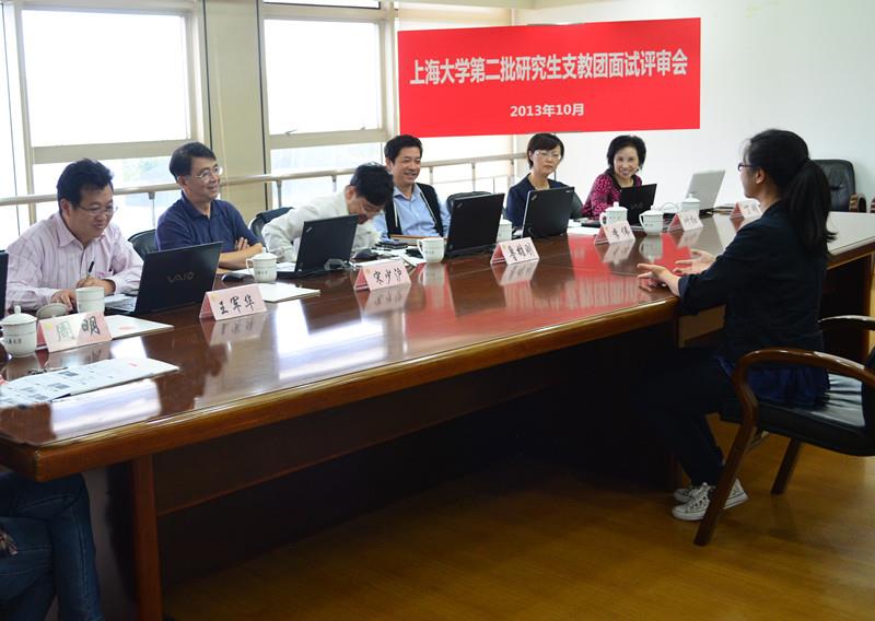 10月15日13:30,Beat365唯一官方网站第二批研究生支教团面试评审会在校本部行政楼403会议室举行,校党委副书记鲁雄刚,校长助理、研工党委书记李伟、社区学院党委书记王军华、社区学院常务副院长宋少沪、招毕办常务副主任叶红、研究生院招生办主任周明、监察处副处长丁明担任评委。